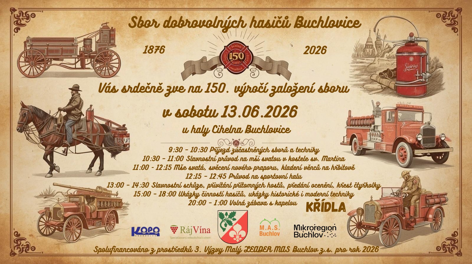Pozvánka na akci: 13.6.2026 – Buchlovice – 150 let SDH