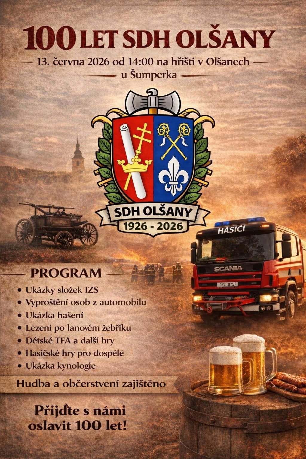 Pozvánka na akci: 13.6.2026 – Olšany – 100 let SDH