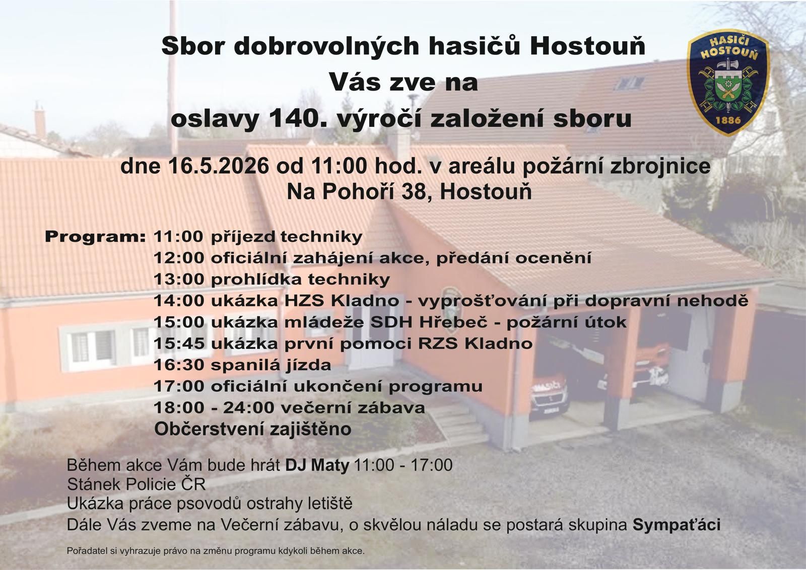 Čeká na Vás bohatý program pro malé i velké, jako například ukázky hasičské techniky, ukázka první pomoci, ukázka HZS Kladno – vyprošťování u dopravní nehody, ukázka SDH Hřebeč – požární útok mládeže, práce psovodů ostrahy letiště či stánek Policie ČR. Občerstvení je zajištěno.