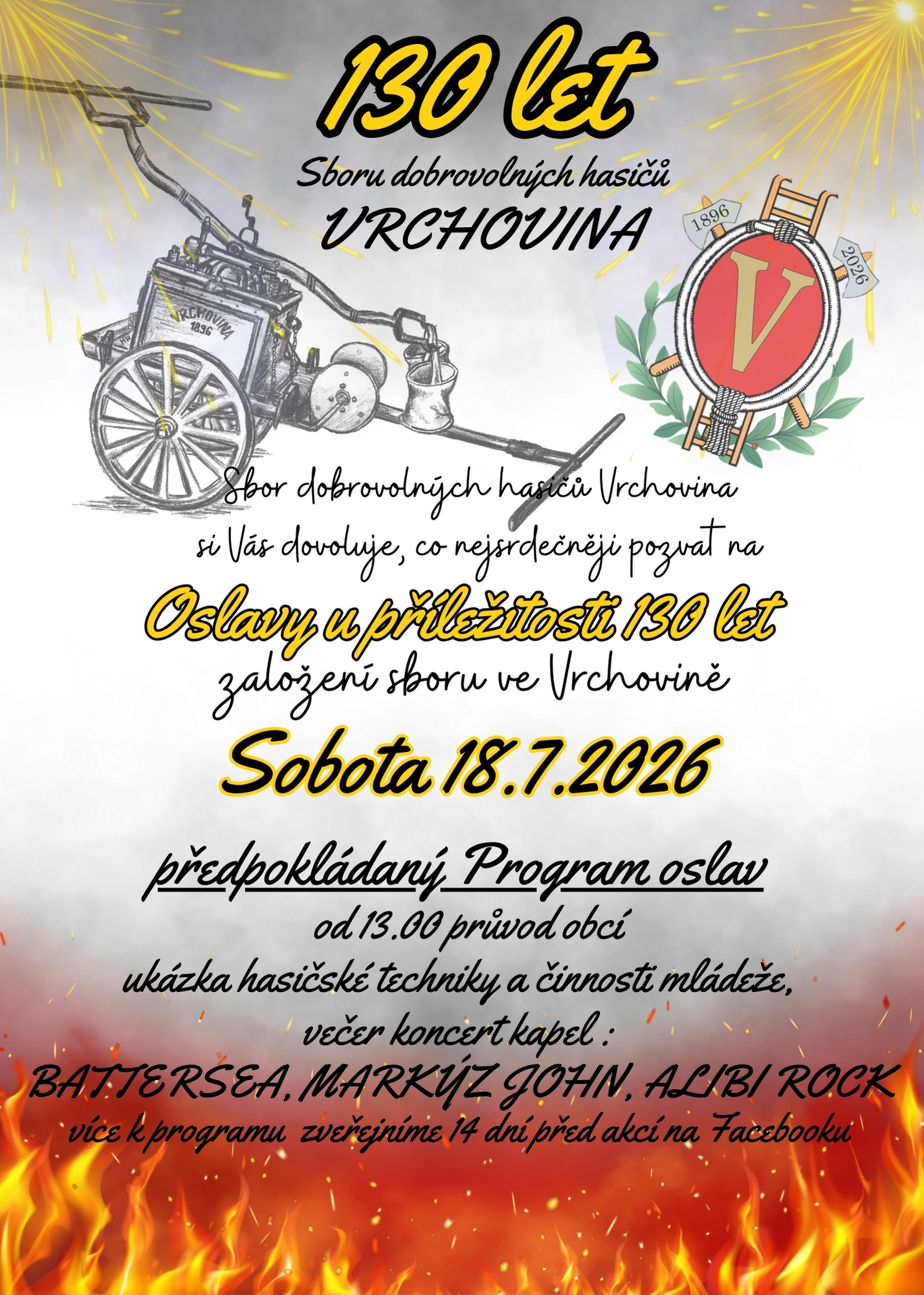 Pozvánka na akci: 18.7.2026 – Vrchovina – 130 let SDH