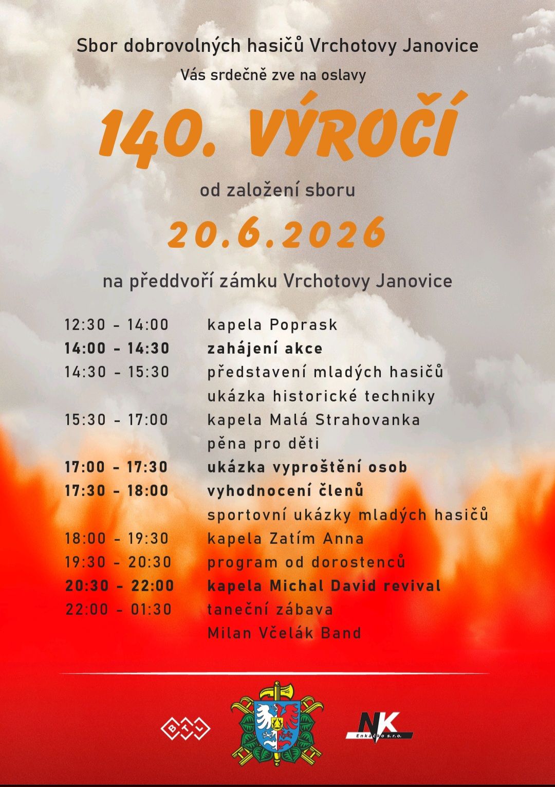 Pozvánka na akci: 20.6.2026 – Vrchotovy Janovice – 140 let SDH