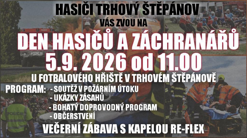 Den hasičů a záchranářů, který pořádá Sbor dobrovolných hasičů v Trhovém Štěpánově je nejen příležitostí představit práci složek IZS, ale i dnem plným zábavy pro děti i dospělé. Návštěvníci tak v dynamických ukázkách uvidí, jak funguje spolupráce složek IZS při mimořádných událostech.