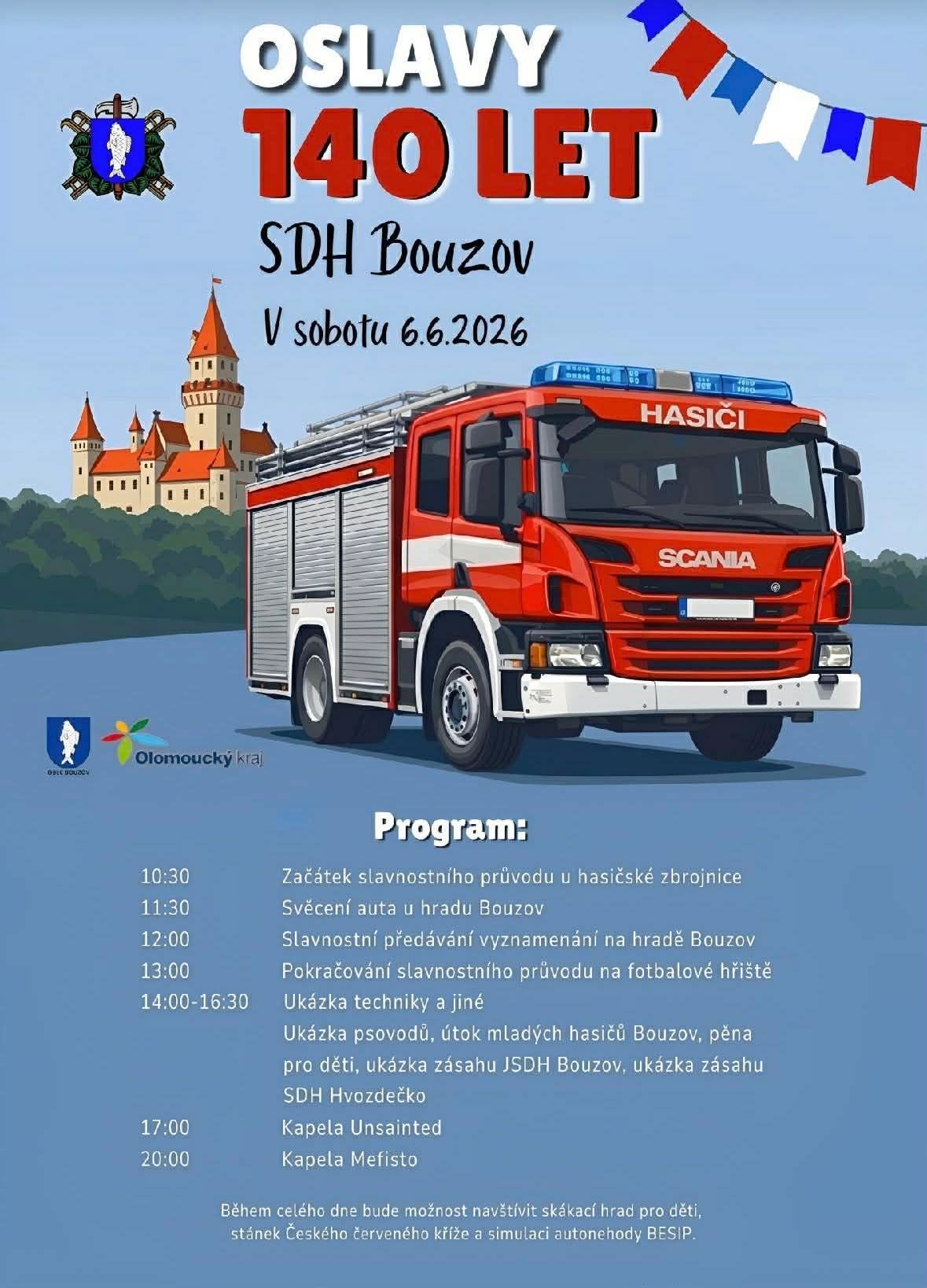Pozvánka na akci: 6.6.2026 – Bouzov – 140 let SDH