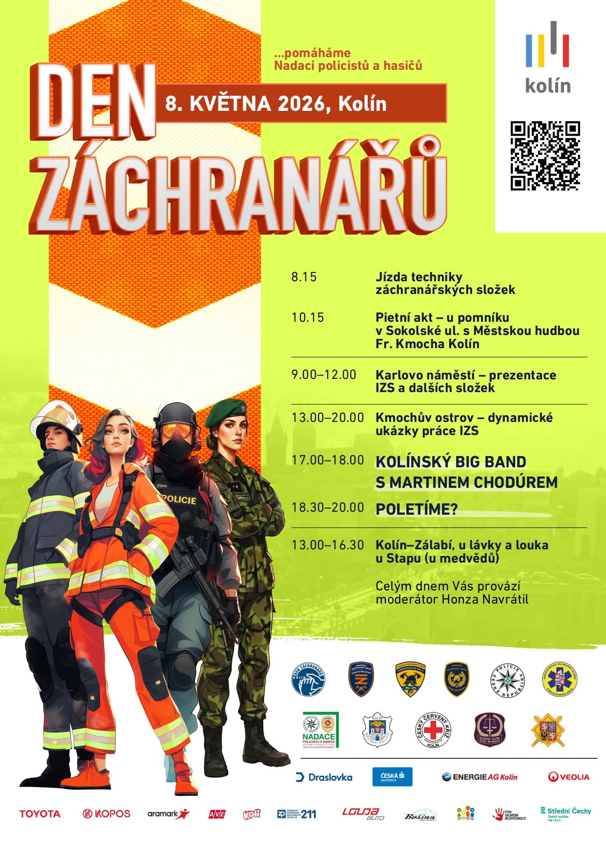 Den záchranářů v Kolíně má dlouholetou tradici, v letošním roce se uskuteční již 28. ročník, a stejně jako v letech minulých je pořádán u příležitosti státního svátku Dne vítězství. Návštěvníci se mohou těšit na ukázky záchranné techniky, dynamické představení profesionálních i dobrovolných složek a možnost zapojit se do důležitých aktivit zaměřených na záchranu životů