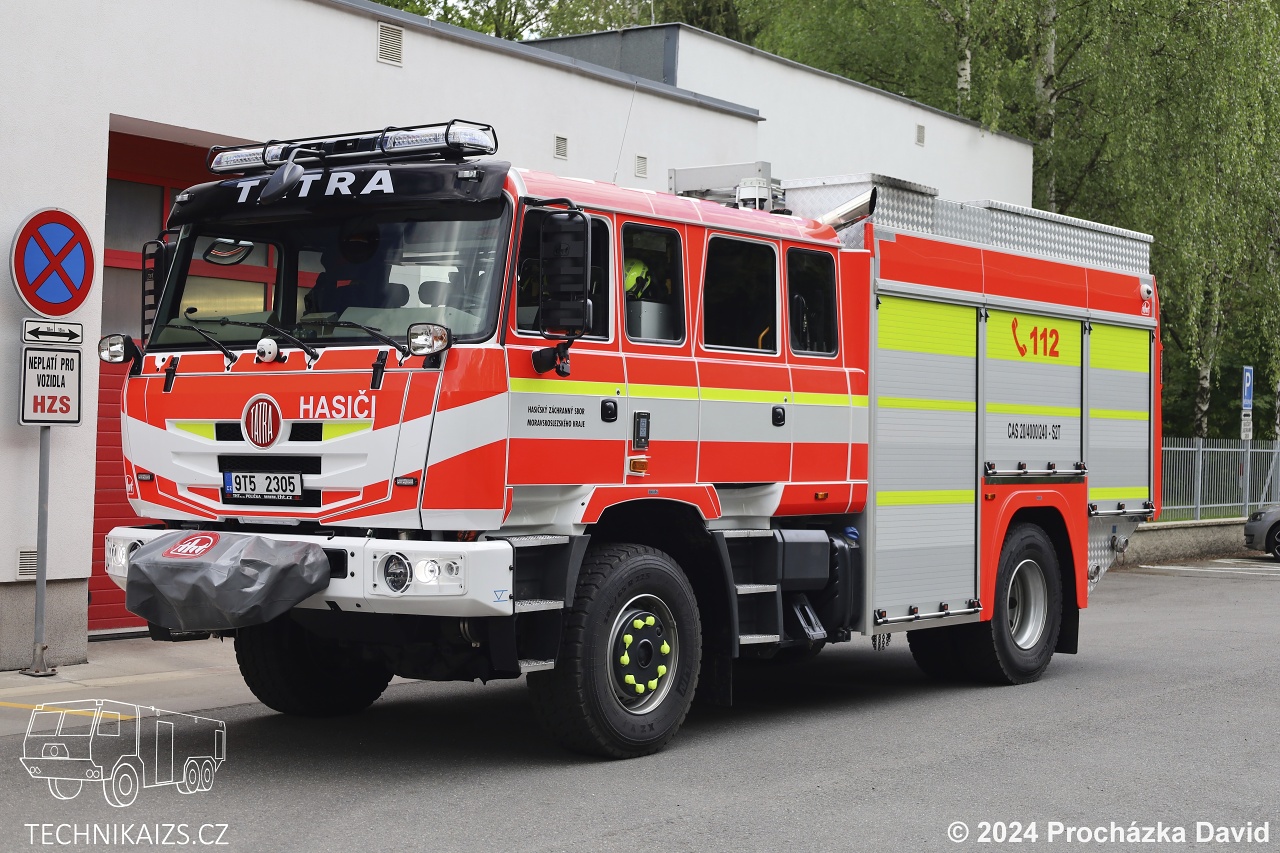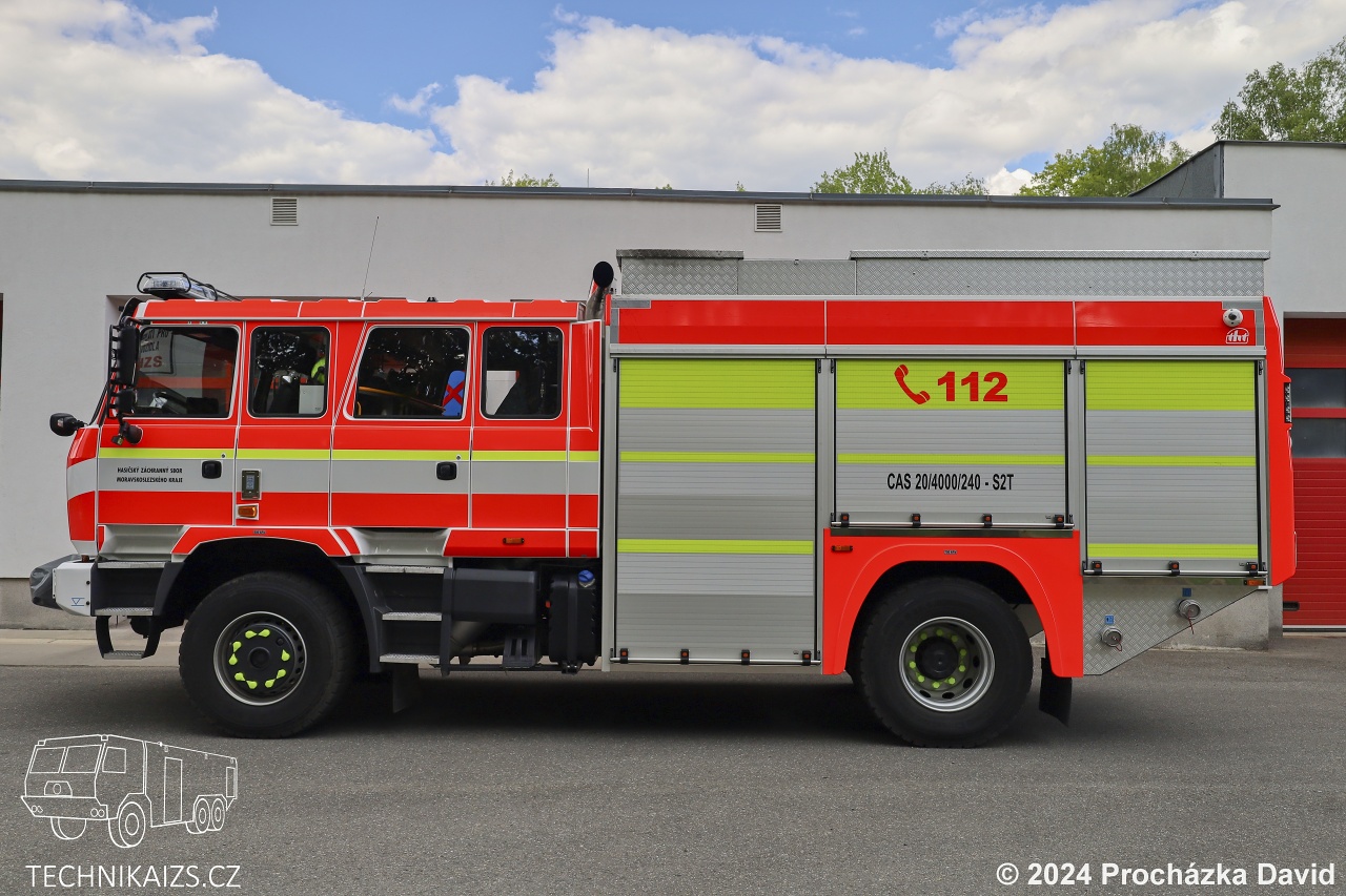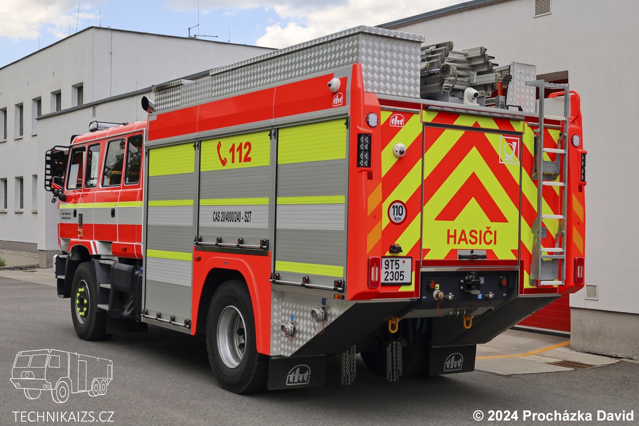 Doplňující info: Na předním nárazníku je uchycen elektrický lanový naviják Ramsey RE s tažnou silou 50 kN a jištěním proti přetížení. Karoserie účelové nástavby je vyrobena z profilů ze slitin lehkých kovů a olepena plechem. Na každém boku je trojice schrán pro příslušenství krytá hliníkovými roletami s podélným madlem, vzadu jsou nahoru výklopné dveře. Nádrže na hasivo jsou vyrobeny z nerezavějící oceli jako jeden celek. Osvětlovací stožár Telkite je osazen čtyřmi 24V LED světlomety a lze ho pneumaticky vysunout až do výšky 5 metrů nad úroveň terénu. Vozidlo je v polepeno do červeného odstínu RAL 3024 a doplněna zvýrazňujícími prvky ve žlutozelené fluorescentní barvě, na zadní části poté najdeme šrafování chevron.
