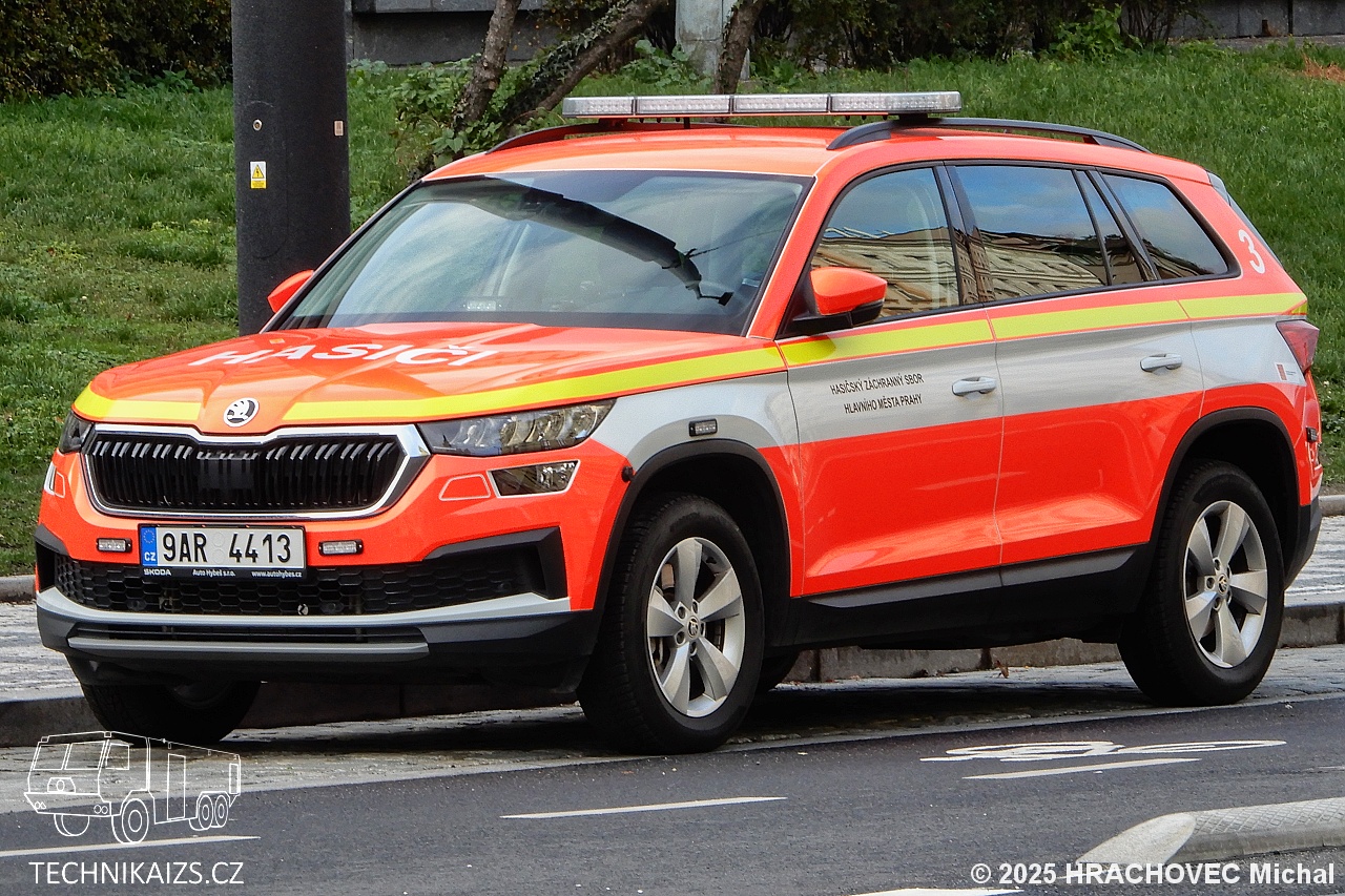 Doplňující info: Škoda Kodiaq s motorizací 2.0 TDI o výkonu 147 kW s automatickou převodovkou a pohonem všech čtyř kol slouží pro účely velitele stanice HZS hlavního města Prahy č. 3 – Holešovice. V roce 2024 došlo k předávce celkem deseti vozů pro velitele stanic, které pořídilo GŘ HZS ČR za 5,4 milionu korun, následná přestavba stála 2,44 milionu korun, kdy částkou 1,266 milionu korun přispělo dotací město Praha.
