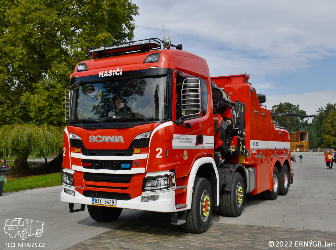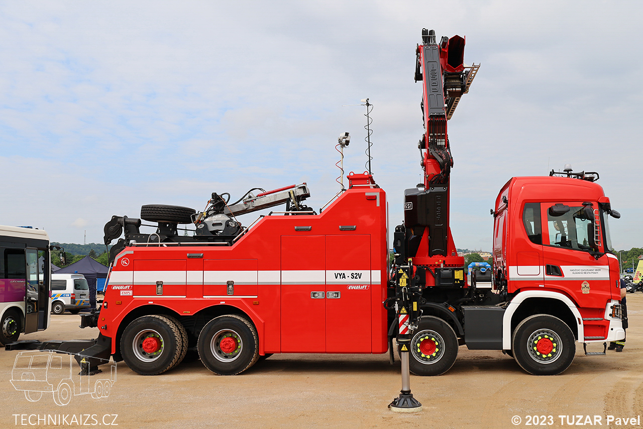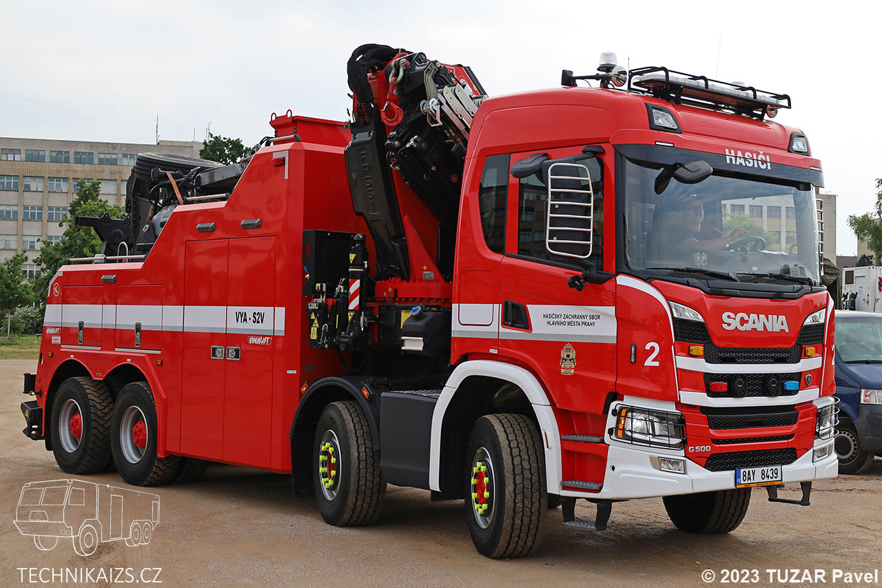 Doplňující info:VYA-S2V Scania G500 8×6, vozidlo dodala společnost Everlift koncem roku 2021. Vozidlo je vybaveno výstražným světelným zařízením značky WHELEN, hydraulickou rukou Fassi F820 které při vyložení na 2,8 metrech zvedne břemeno o hmotnosti 21 500 kg. Pořizovací cena 17 499 383 Kč včetně DPH. Vozidlo bylo na konci dubna 2024 přesunuto na HS Holešovice.