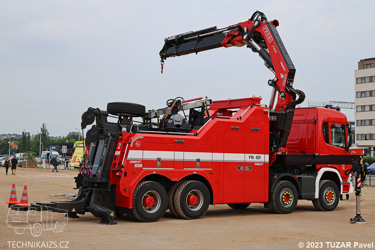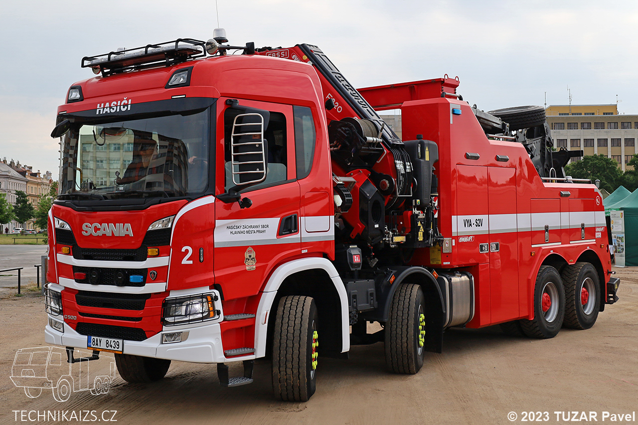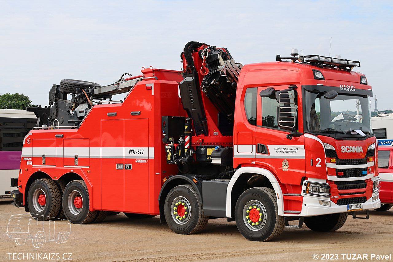 Doplňující info:VYA-S2V Scania G500 8×6, vozidlo dodala společnost Everlift koncem roku 2021. Vozidlo je vybaveno výstražným světelným zařízením značky WHELEN, hydraulickou rukou Fassi F820 které při vyložení na 2,8 metrech zvedne břemeno o hmotnosti 21 500 kg. Pořizovací cena 17 499 383 Kč včetně DPH. Vozidlo bylo na konci dubna 2024 přesunuto na HS Holešovice.