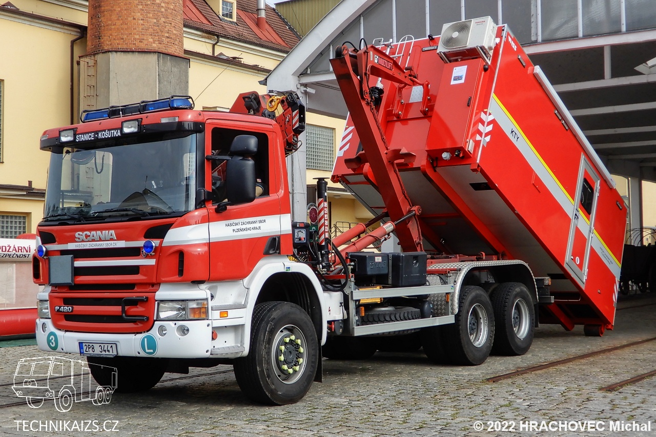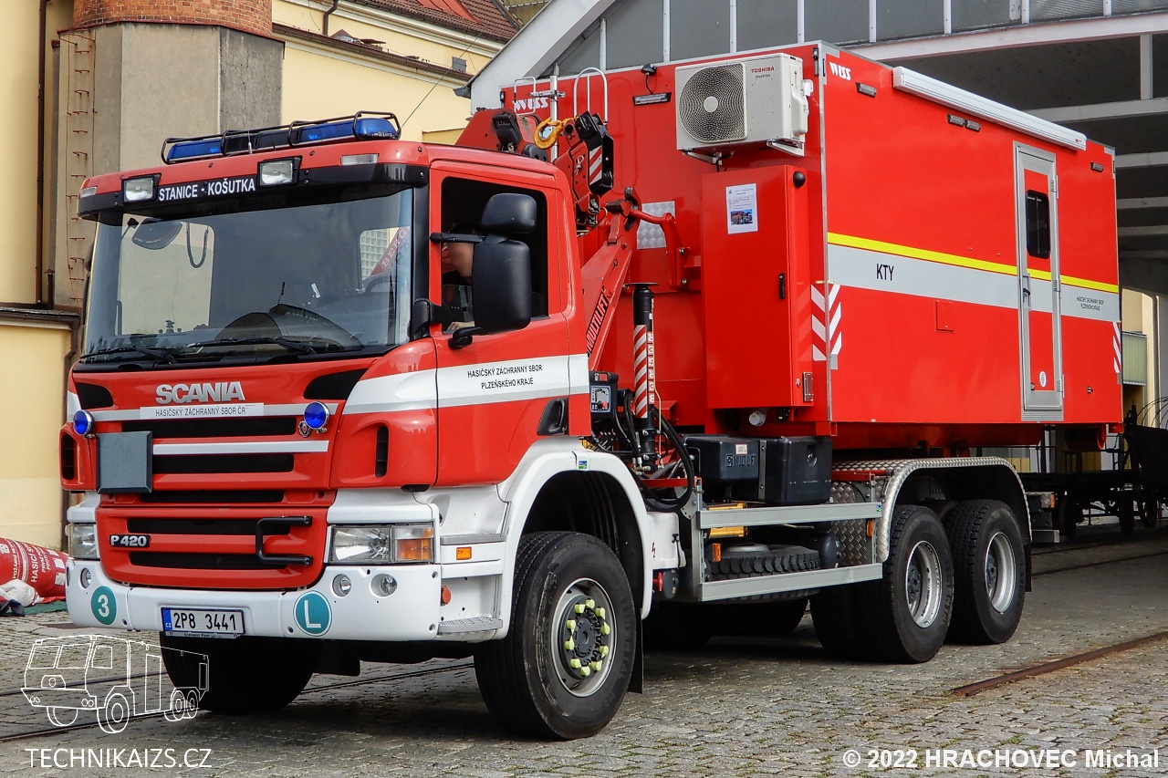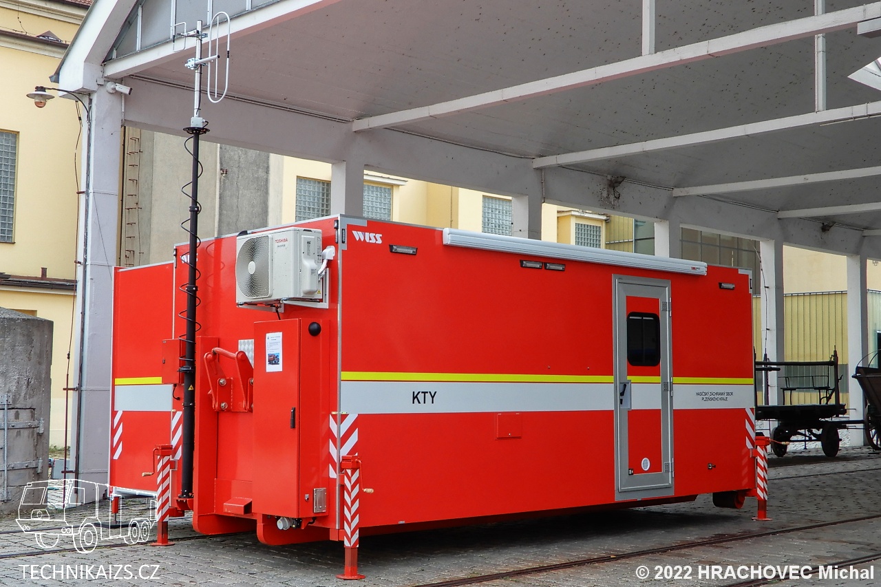 Doplňující info: Kontejner týlový se využívá pro potřeby velitele zásahu, nebo jako týlové logistické zázemí pro zasahující příslušníky. Při rozložení boční části se zvýší plocha podlahy o cca 8m2. Na levé čelní straně KTY je umístěn box v barvě kontejneru, v tomto boxu jsou