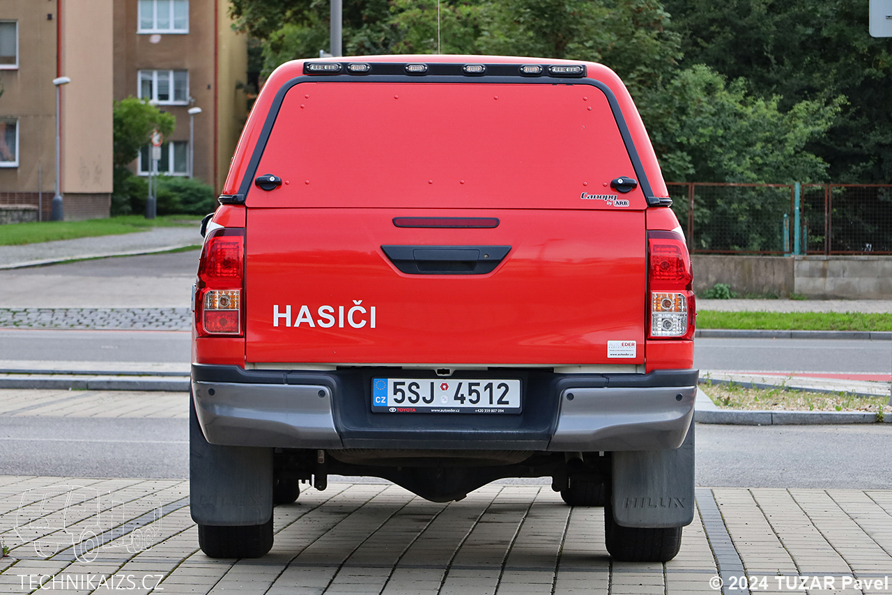 Doplňující info: Celkem pět vozidel Toyota Hilux bylo v roce 2021 pořízeno k HZS Středočeského kraje pro vyšetřovatele příčin požárů. Vozidlo s pohonem všech čtyř kol je poháněno motorem o výkonu 110 kW. Ve vybavení vozu nalezneme například termokameru, dýchací přístroj Drager, dálkoměr, světlomet se stativem, dva práškové hasící přístroje a další věci potřebné k úkonům vyšetřování.