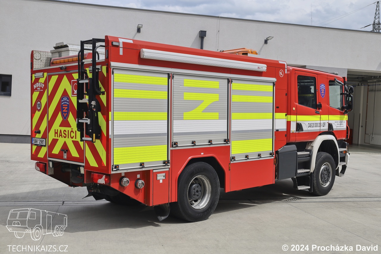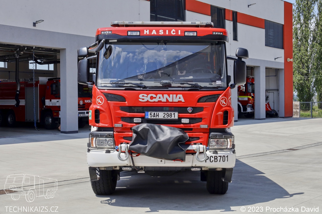 Doplňující info: Prvovýjezdová cisternová automobilová stříkačka Scania P450 je vzhledem ke své předurčenosti vybavena co nejuniverzálněji. Vozidlo je určeno pro hašení požárů s vodou a pěnou, zásahy u dopravních nehod, neodkladnou lékařskou péči, zásahy ve výškách a nad volnou hloubkou, odstranění stromů ohrožující provoz na železnici, zásahy s přítomností nebezpečných látek, mezi které patří detekce plynů nebo ionizující záření, záchrana z vody, odčerpání zatopených prostor a další technické zásahy. Cisterna disponuje předním lanovým navijákem Rhino 12 o tažné síle 5,1 tuny, rolovací markýzou a lafetovou proudnicí PROTEK Style 922 o výkonu 800 l/m. Mezi vybavení cisterny patří těžká sada vyprošťovacího hydraulického zařízení Holmatro s benzinovým agregátem s příslušenstvím, přenosné hasící přístroje, zvedací vaky, vzduchové lahve, suché obleky, zkratovací souprava, motorové a rozbrusovací pily, žebříky, vyvazovací prostředky, ruční nářadí, jednorázové protichemické obleky, zdravotnický batoh, vakuové dlahy, transportní vana, osvětlovací zařízení, páteřní deska, hadice typu C,B a D, transportní vozík na koleje, lezecký materiál, speciální obleky, termokamery, defibrilátor AED, izolační dýchací přístroje a náhradní tlakové lahve, přetlakový ventilátor, eletrocentrála, plovoucí čerpadlo, úkapové vaničky a sorbent. Cisterna disponuje nádržemi na 3000 litrů vody a 200 litrů pěnidla.
