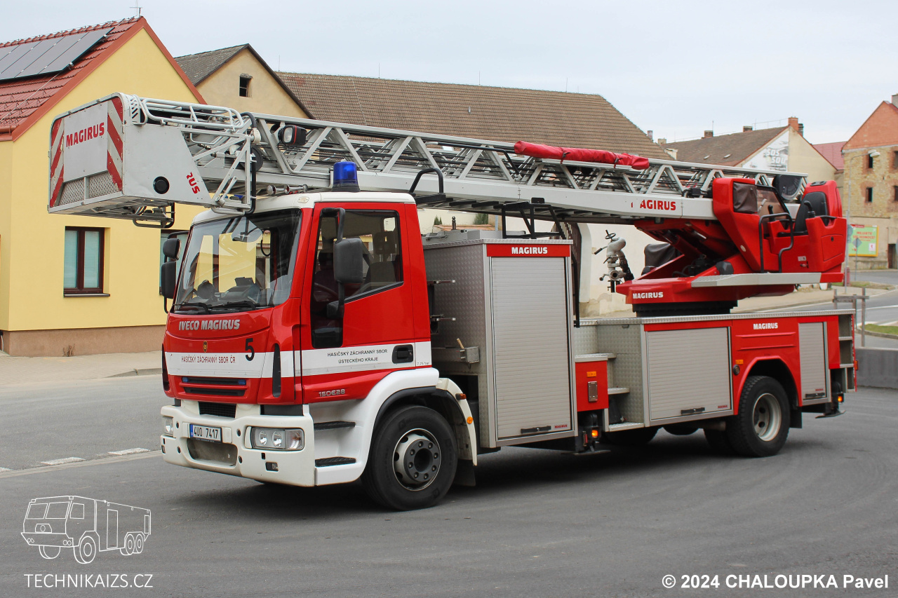 Doplňující info: Automobilový žebřík Iveco Magirus byl v druhé polovině roku 2023 nahrazen novým žebříkem Scania a převeden na stanici Roudnice nad Labem.
