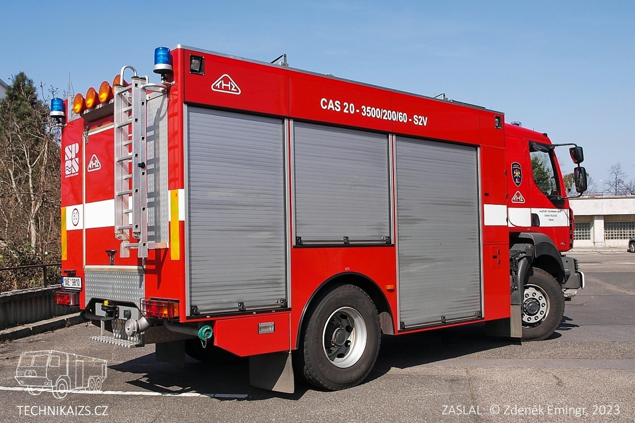 Doplňující info: Cisternová automobilová stříkačka s pohonem 4×4. Objem vody 3 500 l, objem pěnidla 200 l a 2×30 kg CO2.