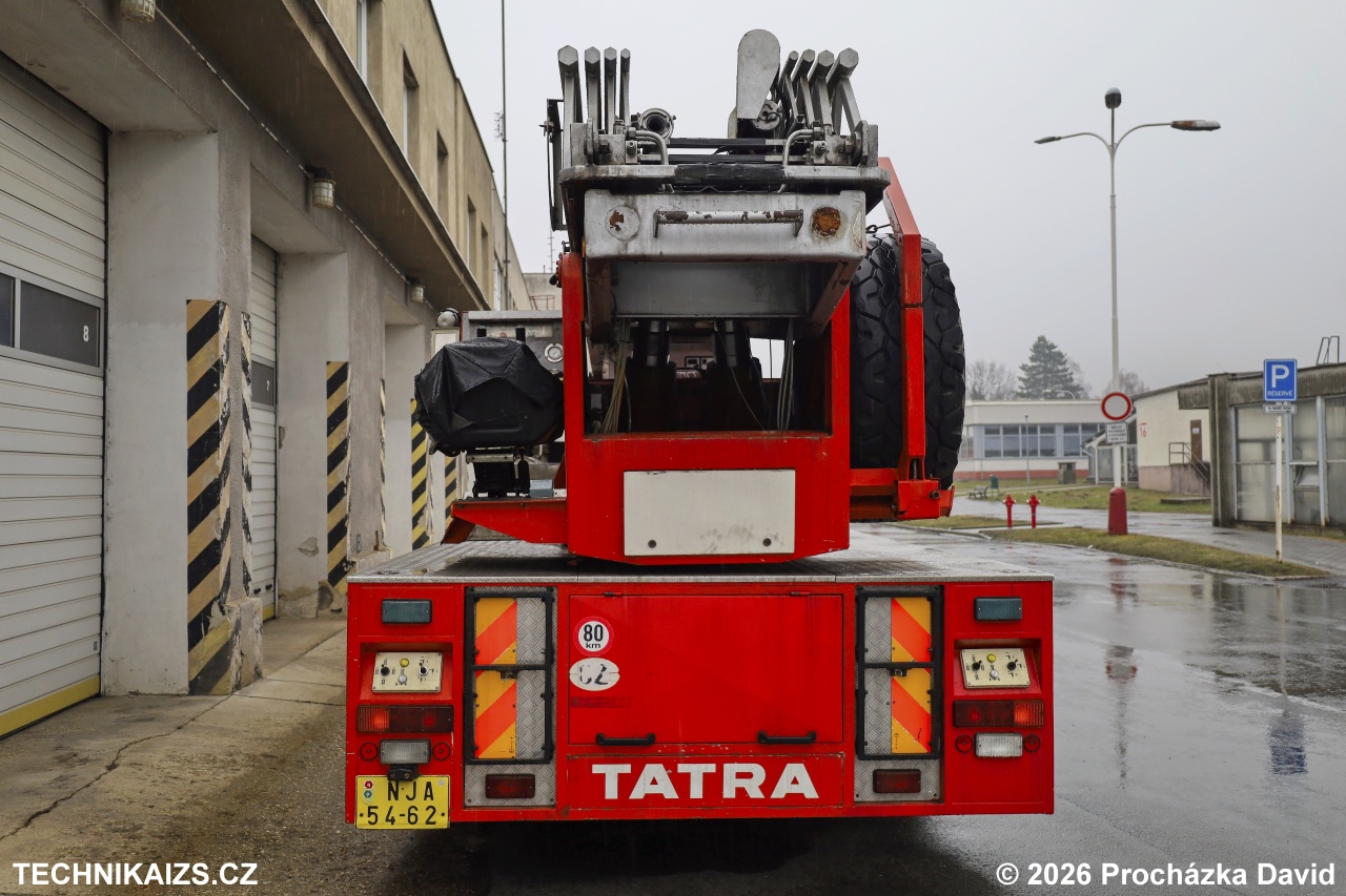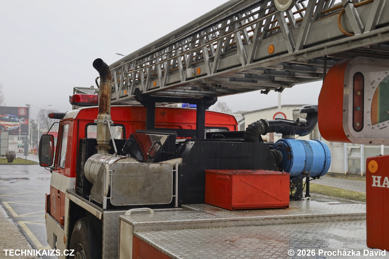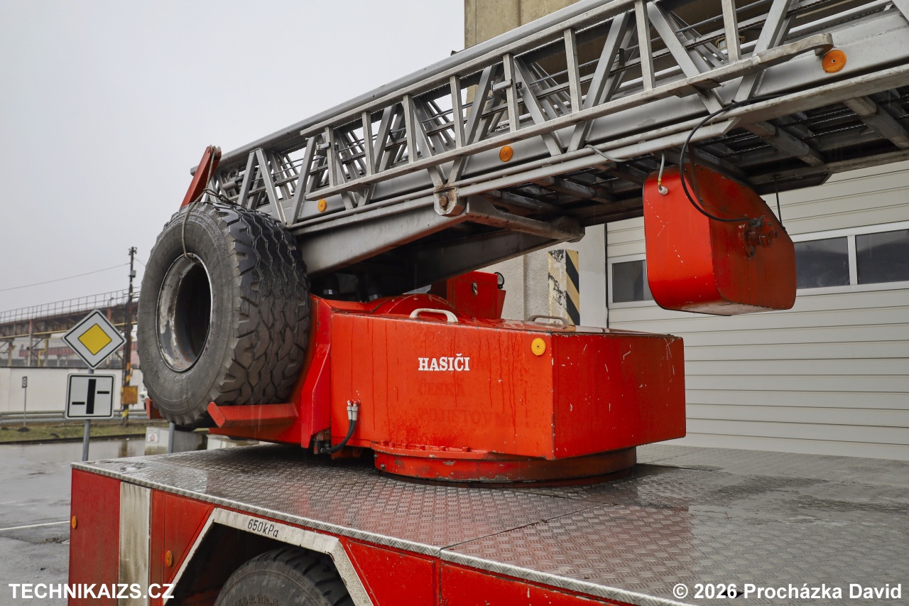 Doplňující info: AZ 32 od chorvatské firmy Tehnomehanika Marija Bistrica je postaven na podvozku Tatra 815 4×4. Samotný žebřík byl na vozidlo namontován v Rakousku. Vozidlo disponuje kabinou s uspořádáním sedadel 1+1, výškou zdvihu 32 metrů, nese typové označení A01L30, výrobní číslo 20.