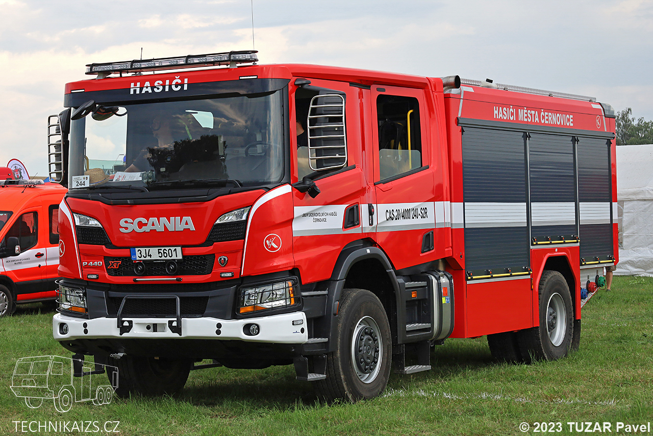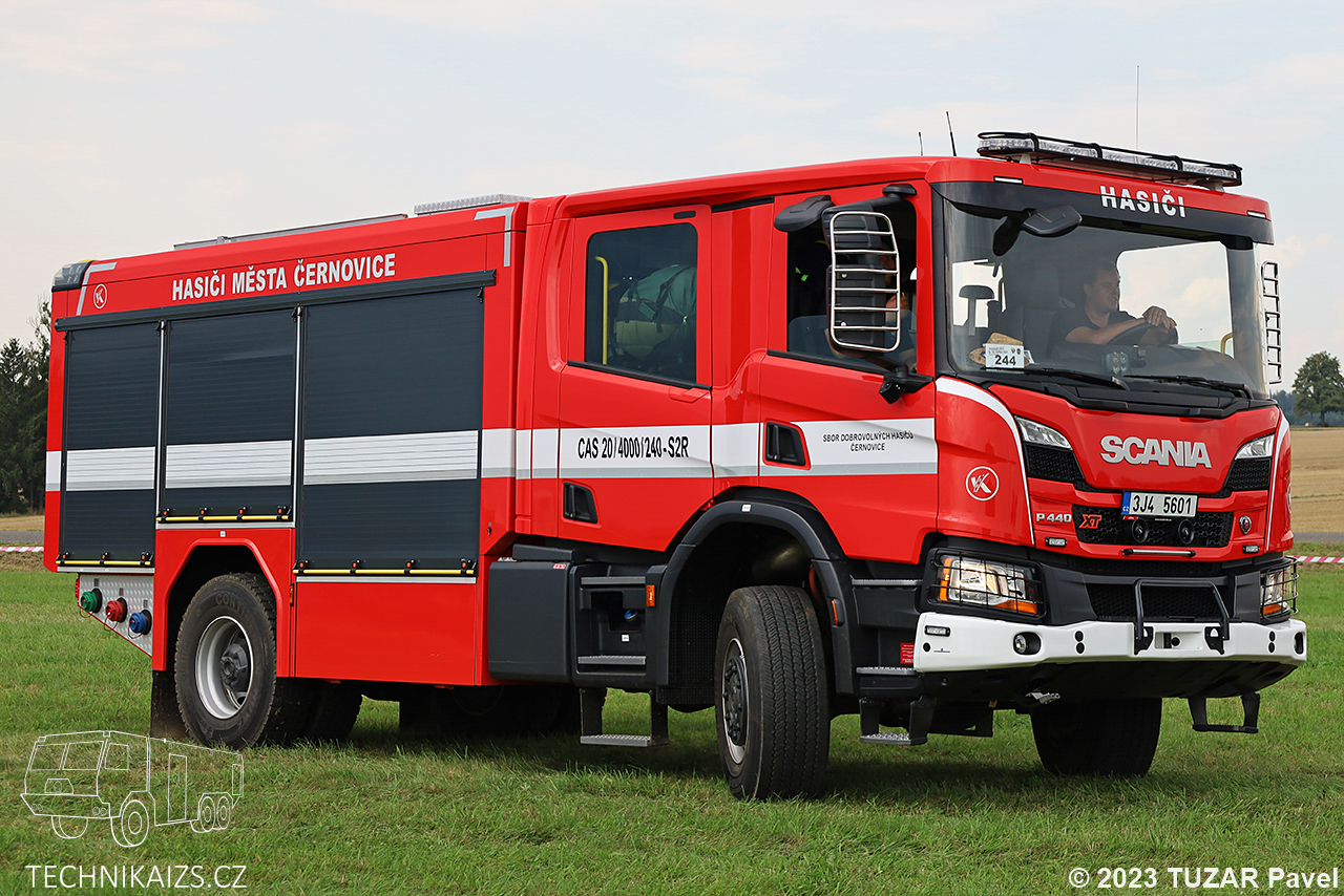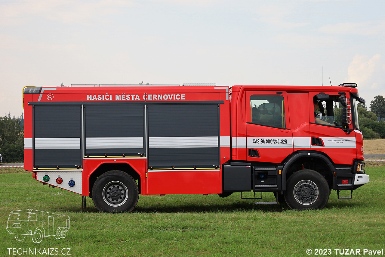 Doplňující info: Jednotka sboru dobrovolných hasičů v Černovicích od roku 2021 disponují novou cisternovou automobilovou stříkačkou Scania P440XT. Rozsáhlé příslušenství umožňuje provedení nejjednoduššího zásahu hasícím přístrojem až technicky náročný a komplikovaný požární zásah nízkým případně vysokým tlakem vody nebo pěny. Mimo jiného je vybavena plovoucím i kalovým čerpadlem, motorovou pilou, motorovým rozbrusem, elektrocentrálou, přetlakovou ventilací nebo vysunovacím otočným reflektorem.