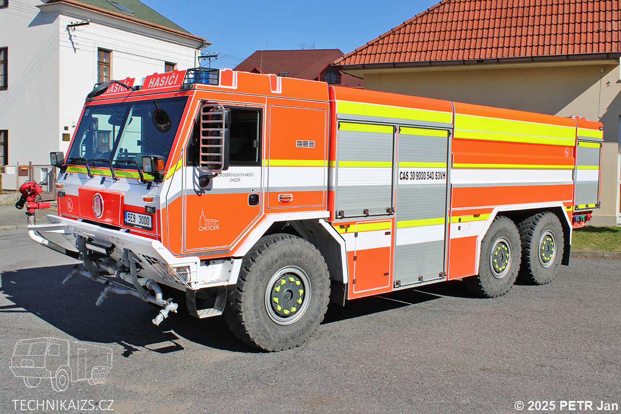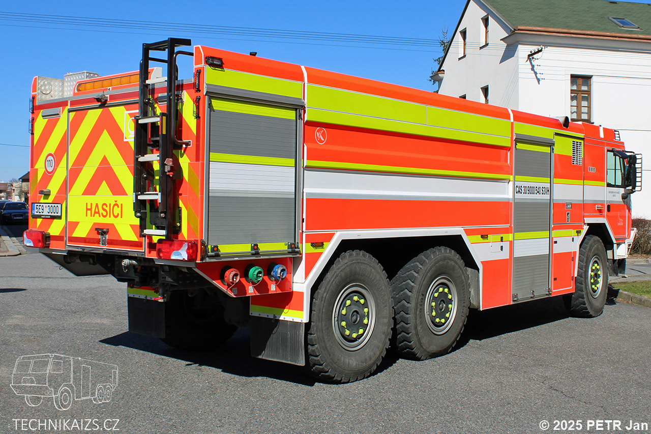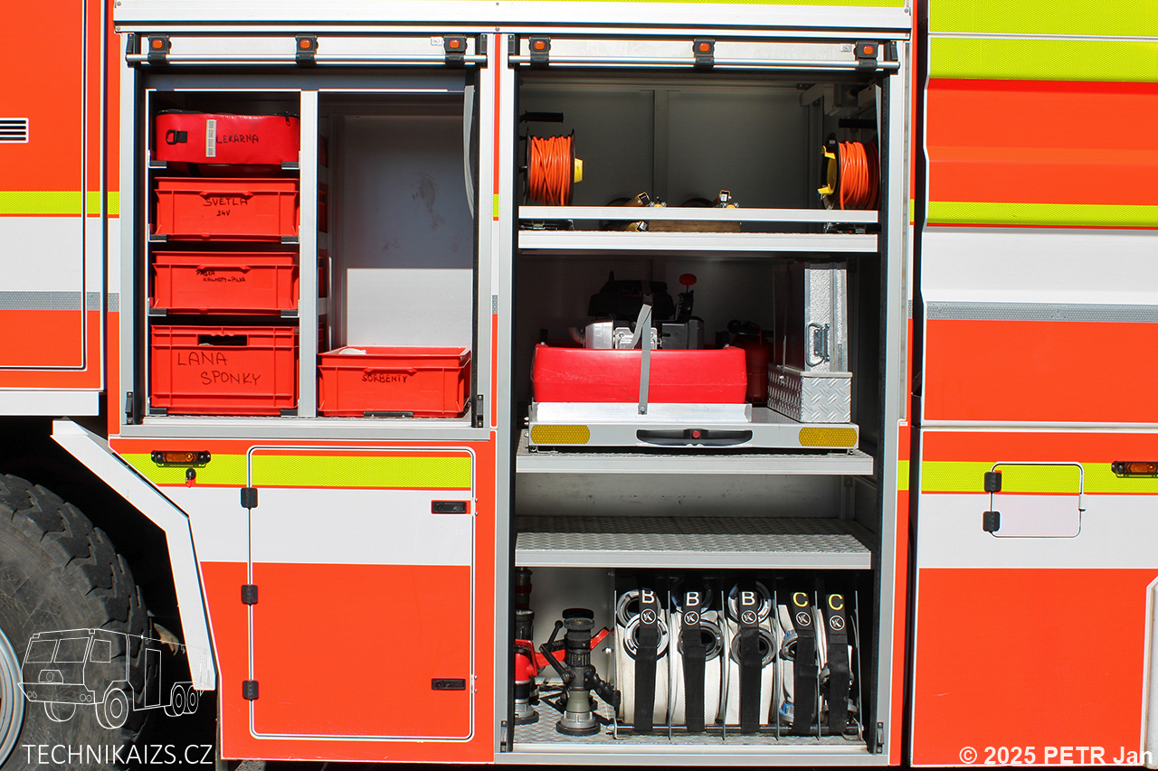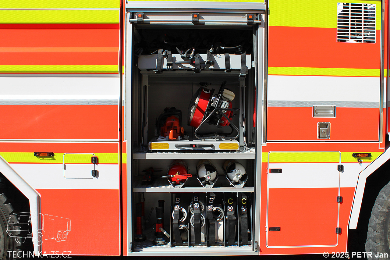 Doplňující info: Cisterna disponuje nádrží na 9000 litrů vody a 540 litrů pěnidla, osazena je motorem o síle 440 koní a poloautomatickou robotickou převodovkou.