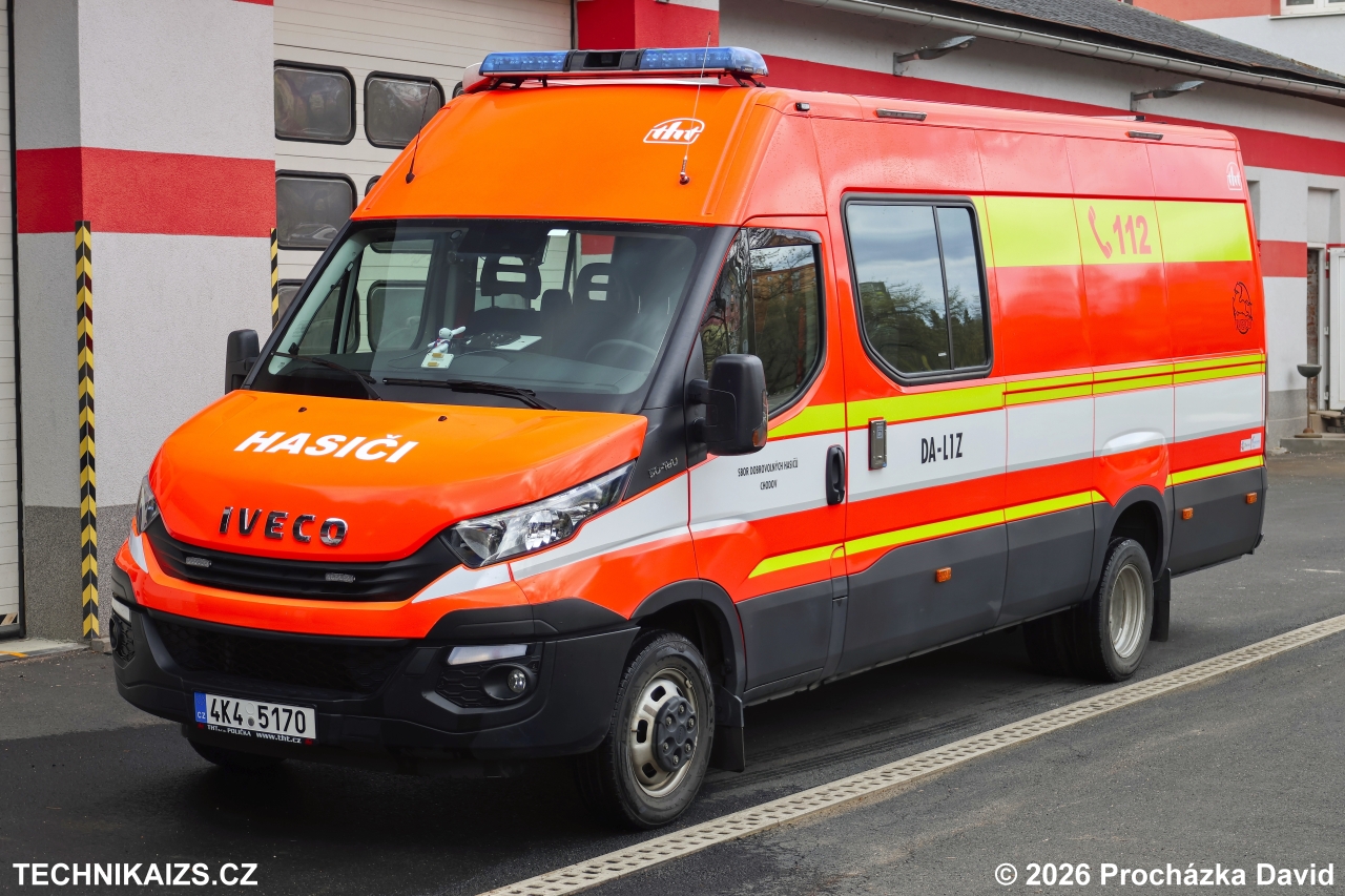 Doplňující info: Unikátní dopravní automobil nalezneme u JSDH Chodov. Nákladový prostor je vybaven malou kuchyňkou s mikrovlnkou, konvicí a potřebami pro 8 osob. Taktéž zde nalezneme dvě sklopné lavice, které v případě nutnosti evakuace osob rozšíří kapacitu pasažérů na 18 osob. Celková cena vozidla byla 2 400 000 Kč.