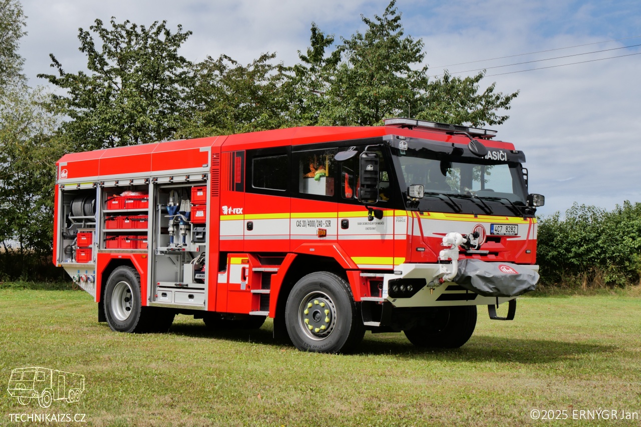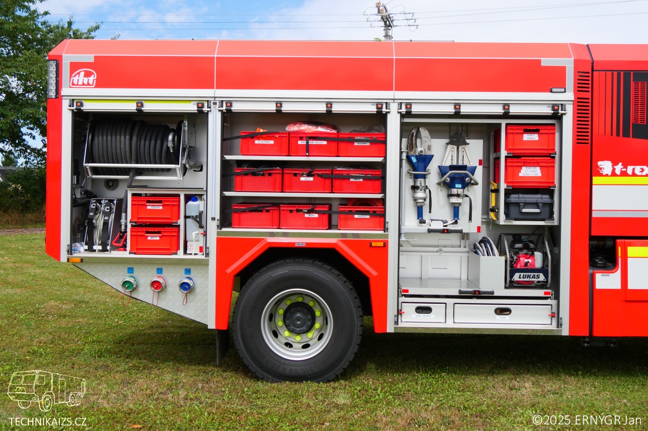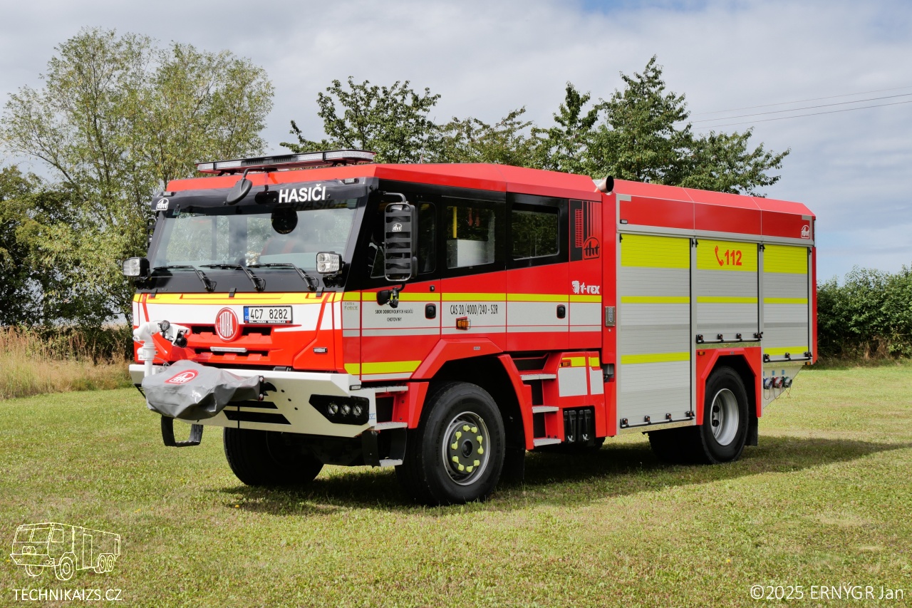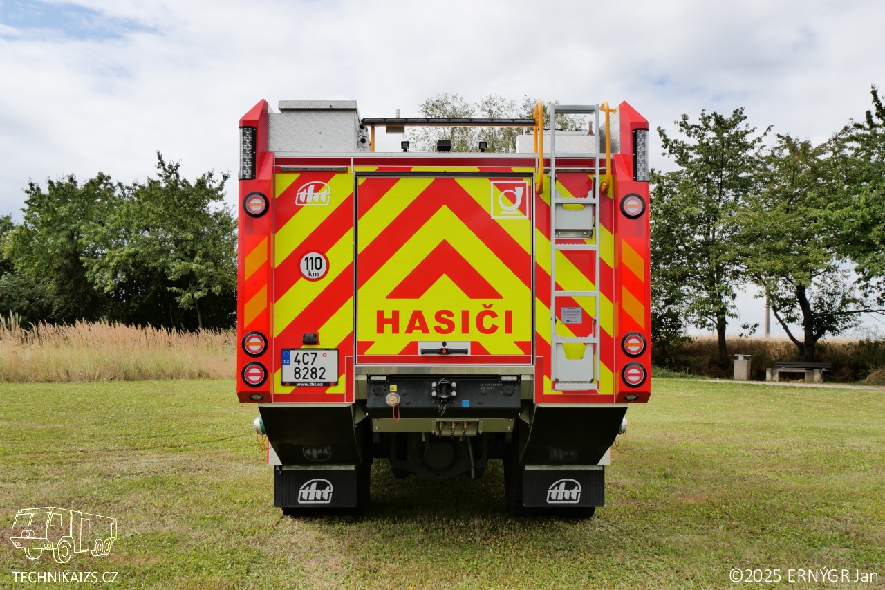 Doplňující info: Tatra je vybavena osmiválcovým vzduchem chlazeným motorem o výkonu 340 kW a převodovkou Allison. Vozidlo je vybaveno retardérem v elektromagnetickém provedení. Přední náprava je řídící, vybavená uzávěrkou osového diferenciálu zapínatelnou dle potřeby. Pohon na kola je proveden z rozvodovky hřídeli s homokinetickými klouby. Kyvadlové polonápravy jsou odpruženy vzduchovými vlnovcovými pružinami a teleskopickými tlumiči pérování. Zadní náprava je osazena čelním diferenciálem s uzávěrkou, která je rovněž zapínatelná dle potřeby. Kyvadlové polonápravy jsou odpruženy kombinací vzduchových vlnovcových a vinutých pružin. Tlumiče pérování jsou teleskopické. Tlak ve vlnovcových pružinách se mění pomocí regulačního ventilu v závislosti na zatížení zadní polonápravy, přičemž je zachován stálý odklon. Ovládáním v kabině řidiče lze regulací tlaku vzduchu ve vlnovcových pružinách měnit výšku vozidla vůči provozní výšce. Nástavba je vyrobena z profilů ze slitin lehkých kovů s použitím prizmatických šroubovaných spojů a olepena plechem. Nádrž na vodu a pěnidlo tvoří jeden celek, uveze celkem 4000 litrů vody a 240 litrů pěnidla. CAS je dále vybavena systémem řízení provozu účelové nástavby, který umožňuje monitorování a ovládání jejích prvků. Osvětlení okolí vozidla zajišťují LED lišty umístěné na obou bocích a v zadní části nástavby, doplněné o LED stavoznaky. V dosahu sedadla řidiče je uchycen tablet, který slouží k ovládání a monitorování funkcí CAS. Pro ochranu a odolnost vozidla jsou zpětná zrcátka opatřena kovovými kryty. Pro hašení je CAS vybavena lafetovou proudnicí na předním nárazníku. Celková cena vozidla činí 9 556 247 Kč včetně DPH.