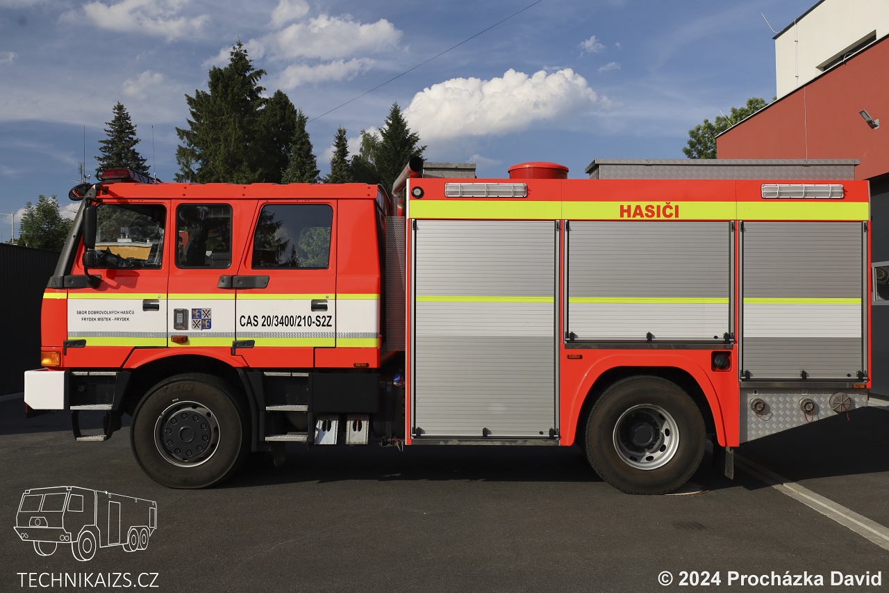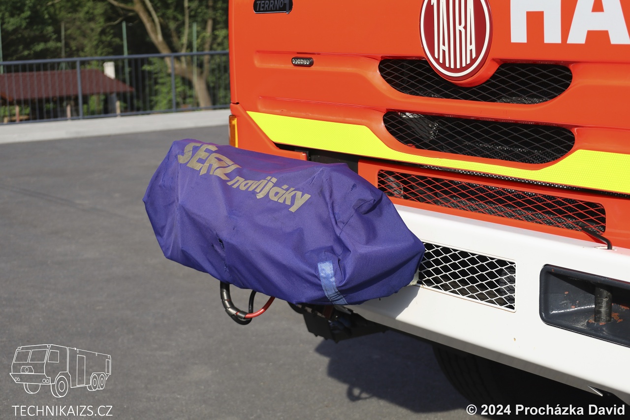 Doplňující info: Cisternová automobilová stříkačka je určena pro přepravu požárního družstva a hasebních prostředků pro požární zásah vodou nebo pěnou a při použití nízkého nebo vysokého tlaku vody. Auto je vybaveno: lanovým navijákem, dýchacími přístroji, radiostanicemi, motorovou pilou, rozbrušovací pilou, elektrocentrálou, vakuovými nosítky, křísícím kyslíkovým přístrojem, výsuvným osvětlovacím stožárem, plovoucím čerpadlem, kalovým čerpadlem, přetlakovým ventilátorem, vysokotlakým zařízením prvotního zásahu, sorbentem atd. Obsah nádrží: 3400 l vody a 210 l pěnidla.