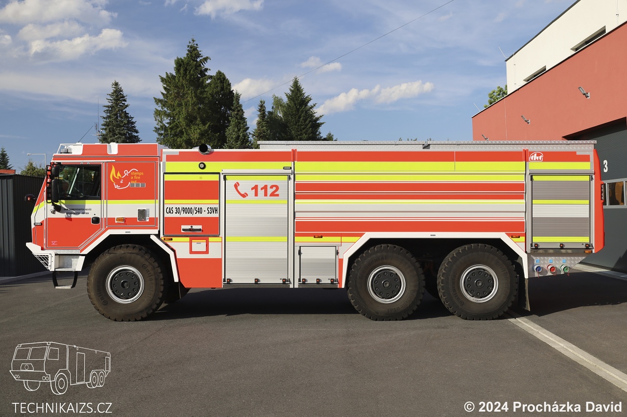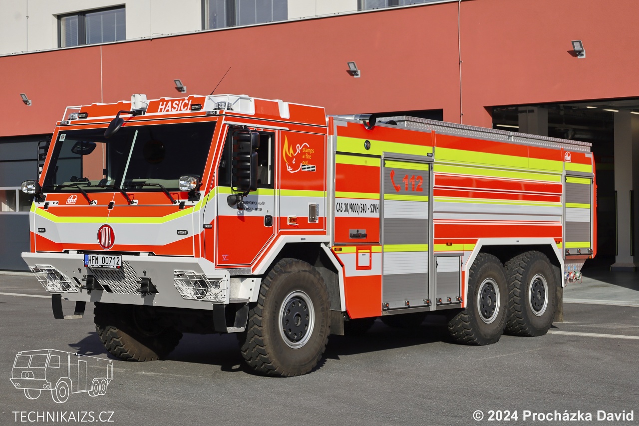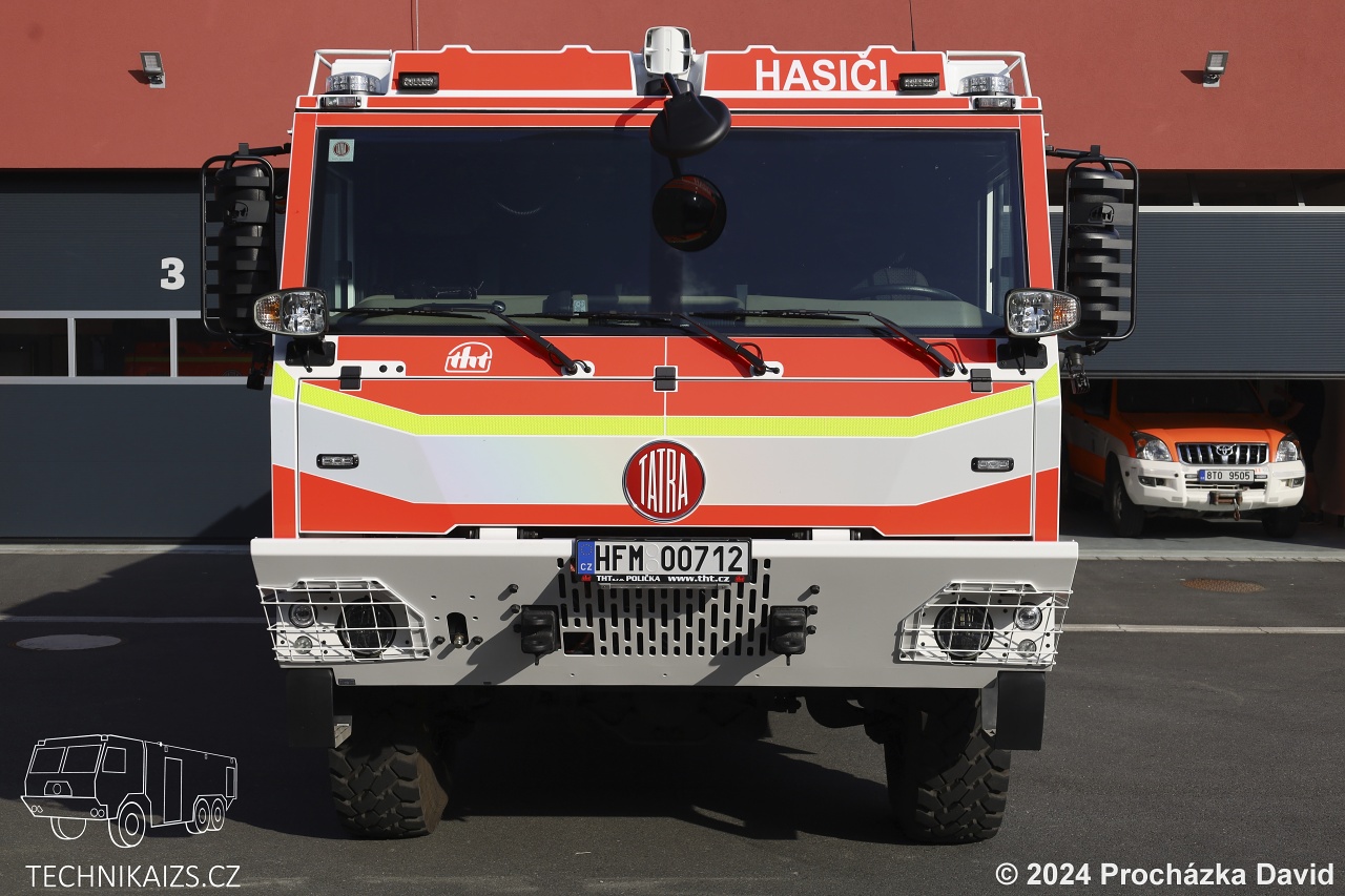 Doplňující info: Tatra disponuje osmiválcovým vzduchem chlazeným agregátem o výkonu 325 kW s převodovkou Allison je automatická s hydrodynamickým měničem. Kabina řidiče je čtyřmístná. V zorném poli řidiče je displej couvací kamery, velitel má k dispozici tablet. Nástavba je modulová. Přední a zadní skříně jsou konstrukčně shodné a jsou sešroubované z hliníkových profilů a olepené plechem.