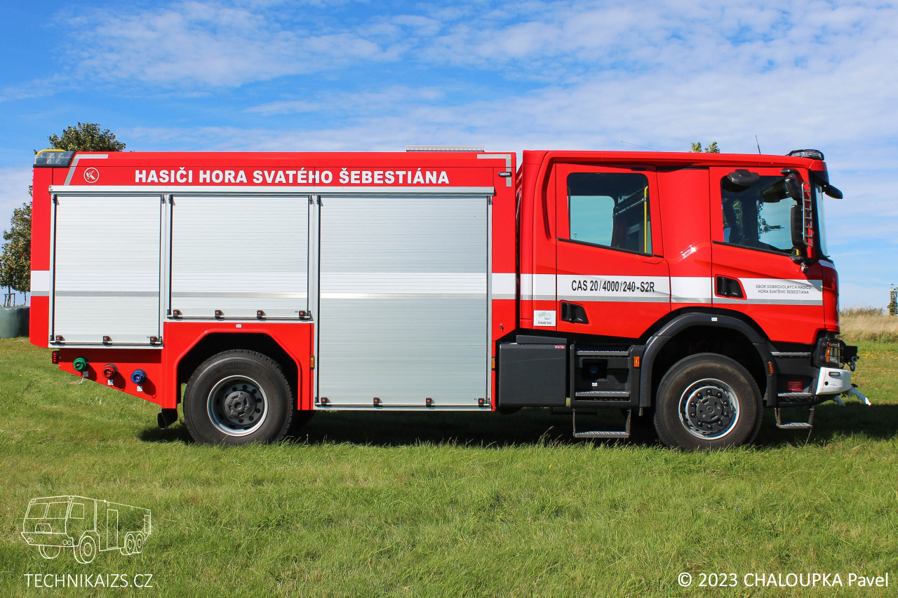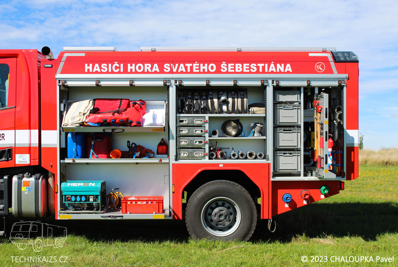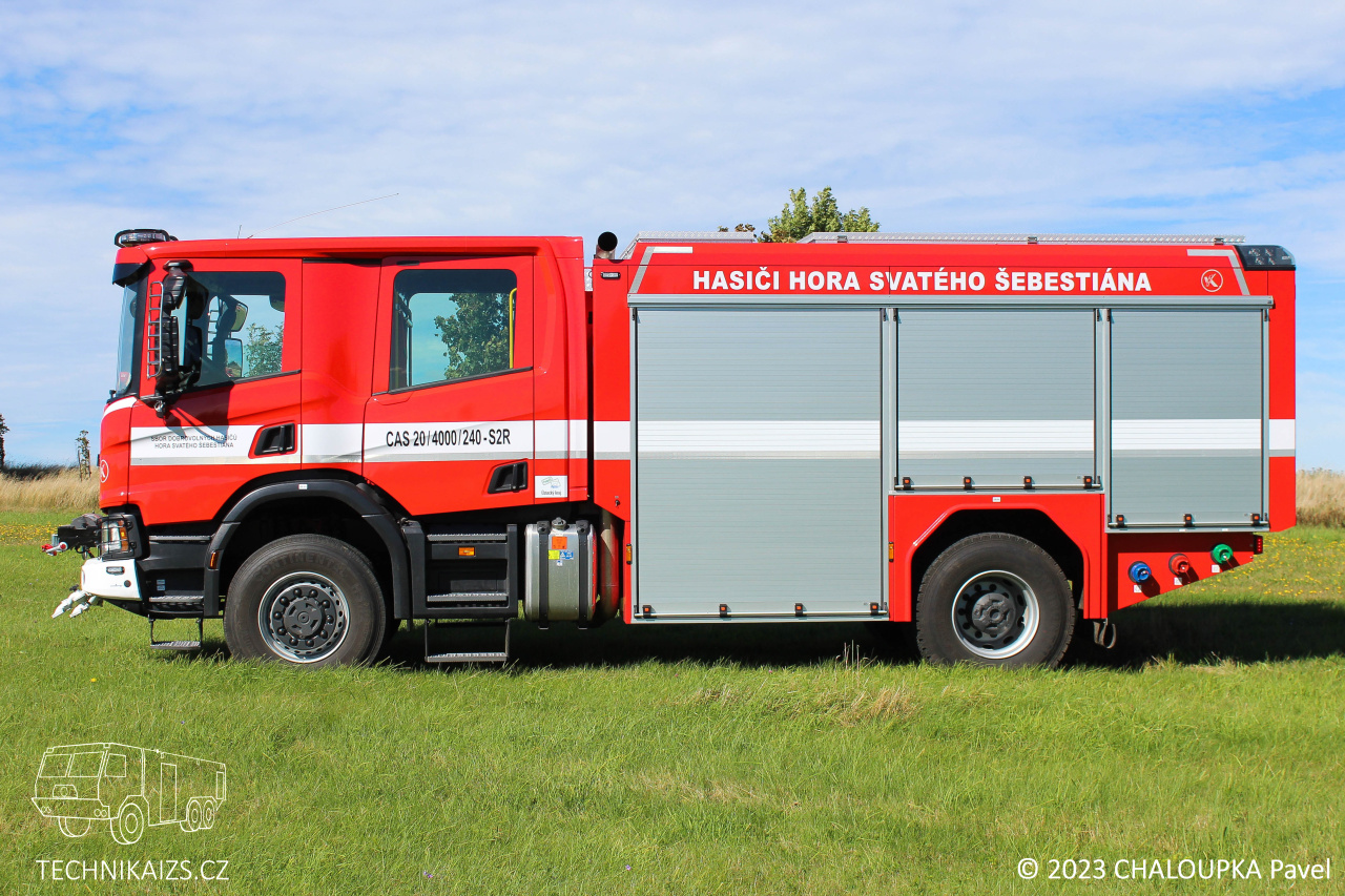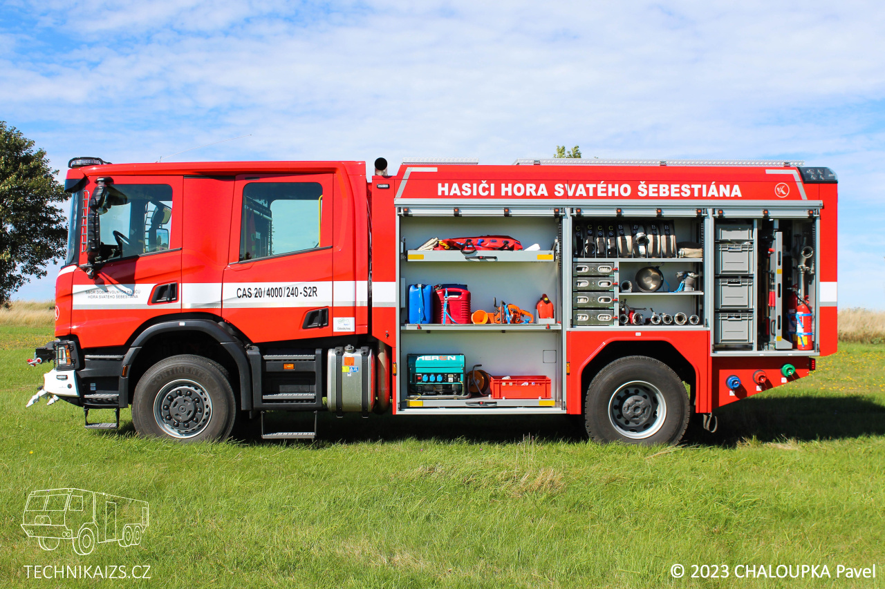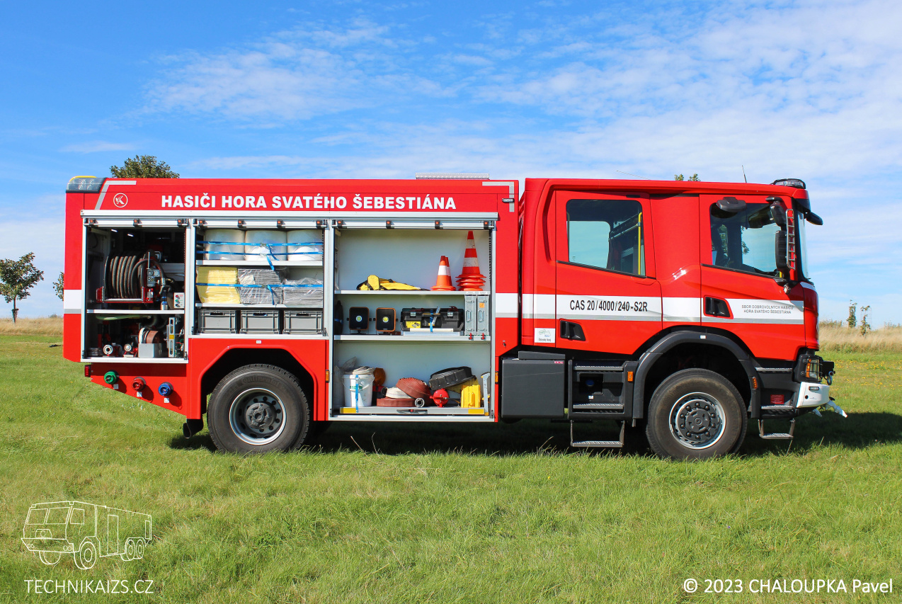 Doplňující info: Jednotka sboru dobrovolných hasičů v Hoře Svatého Šebestiána v roce 2021 převzala novou cisternovou automobilovou stříkačku Scania P440XT, která nahradila původní CAS 25 Škodu 706 RTHP.