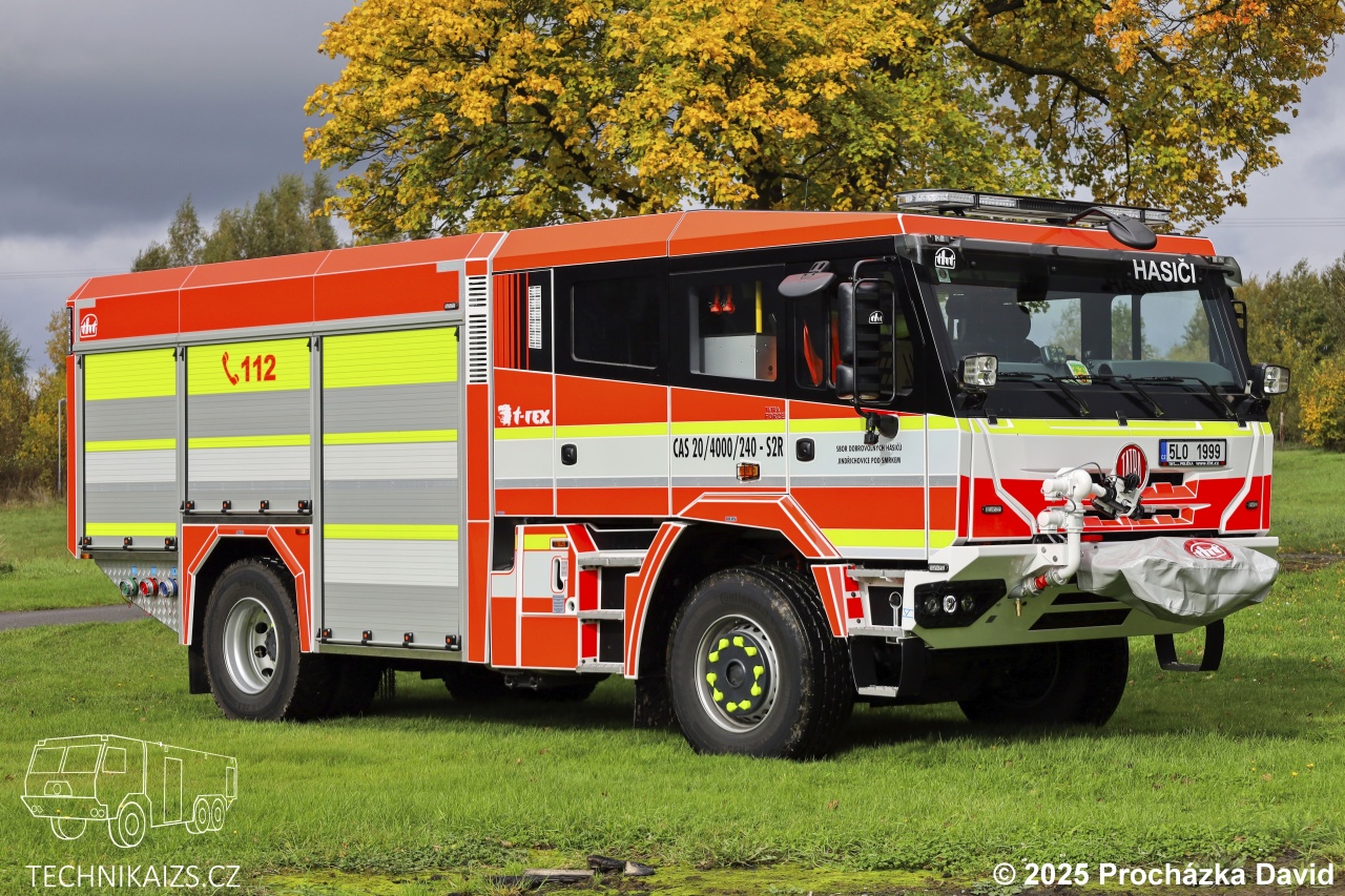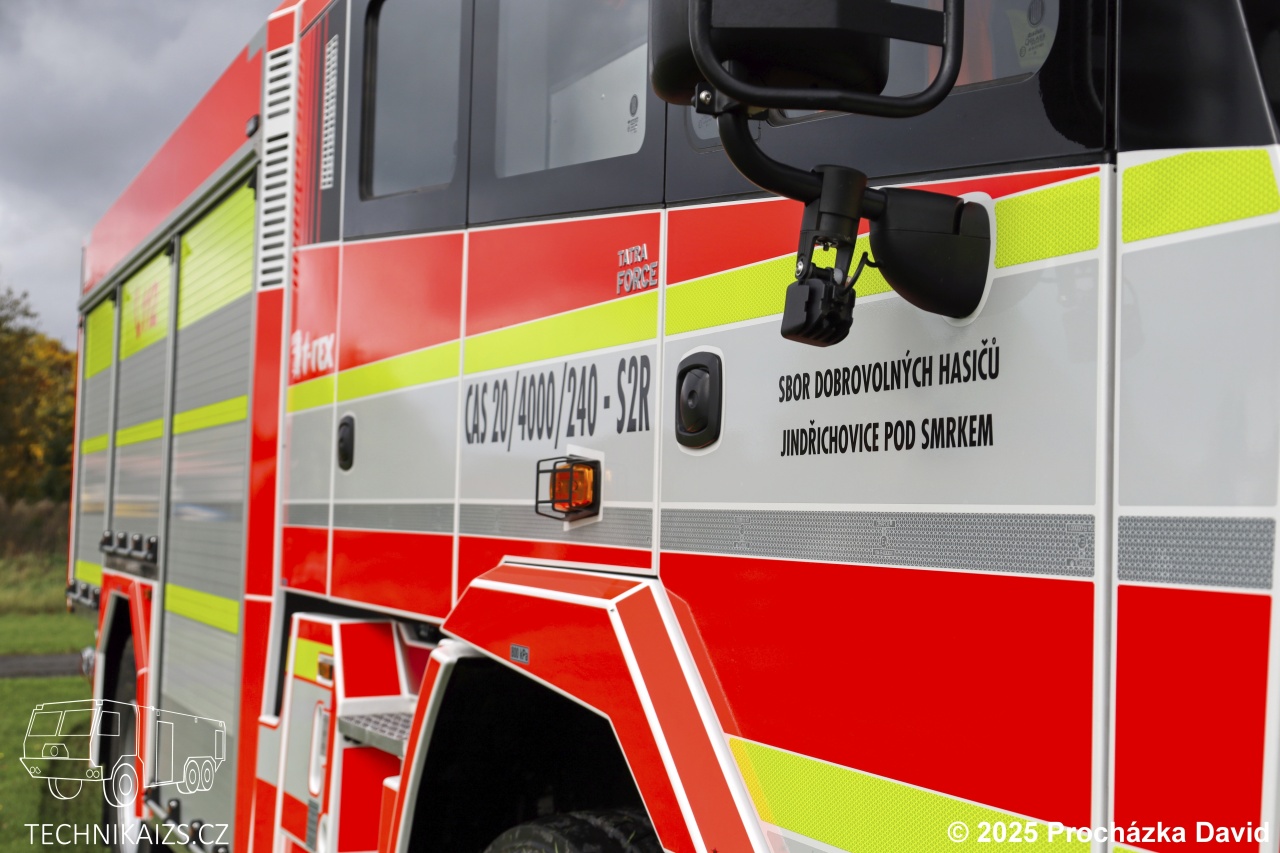 Doplňující info: Nová Tatra Force je postavena na robustním podvozku s automatickou převodovkou Allison a hydrodynamickým měničem. Pohon zajišťuje výkonný vznětový motor s výkonem 340 kW, který umožňuje brodění do hloubky alespoň 750 mm. Pro zvýšení průchodnosti v náročném terénu je vozidlo vybaveno automatickými podmetacími řetězy a lanovým navijákem. Podvozek je dále vybaven retardérem a chráněn návleky pro zvýšení odolnosti v těžkém provozu. Jednoprostorová čtyřdveřová kabina poskytuje dostatek prostoru a komfortu pro celou osádku. Nástavba vozidla je vyrobena z lehkých hliníkových slitin, spojovaných prizmatickými šroubovanými spoji, s opláštěním z hliníkového plechu. Elektrická výbava zahrnuje zásuvku 230 V se systémem inteligentního dobíjení akumulátorových baterií, který je integrován s přípojným místem pro doplňování tlakového vzduchu. Nástavba je elektronicky řízená a zajišťuje snadnou obsluhu. Nádrž na vodu a pěnidlo tvoří jeden celek – nádrž na vodu, o objemu 4000 litrů, je zhotovena z nerezové oceli, zatímco nádrž na pěnidlo pojme 240 litrů. Nástavba má dostatek úložného prostoru pro speciální výbavu, např. přetlakový ventilátor, elektrocentrálu kalové čerpadlo, motorové pily, proudnice, pěnotvorný nástavec, požární hadice, požární světlomet a mnoho dalšího potřebného vybavení. Vozidlo disponuje také výsuvným osvětlovacím stožárem a nárazníkovou lafetovou proudnicí ovládanou ze sedadla velitele. Samozřejmostí je spojovací a komunikační technika i dýchací přístroje. Barevné provedení vozu odpovídá odstínu RAL 3024 s výraznými retroreflexními prvky pro lepší viditelnost. Pořízení tohoto moderního automobilu bylo financováno nejen z vlastních rozpočtových prostředků obce Jindřichovice pod Smrkem, ale také za výrazné podpory státu a kraje. Ministerstvo vnitra – Generální ředitelství HZS ČR poskytlo účelovou investiční dotaci z programu „Účelové investiční dotace pro jednotky SDH obcí“ ve výši 4.000.000 Kč, Liberecký kraj přispěl částkou 1.000.000 Kč z „Dotačního fondu v oblasti podpory č. 1 – Požární ochrana a prevence kriminality, program č. 1.1 – Podpora jednotek požární ochrany obcí Libereckého kraje“. Celková cena vozidla činí bezmála 10.238.786,47 Kč, z čehož podíl obce Jindřichovice pod Smrkem činil 5.238.786,47 Kč.