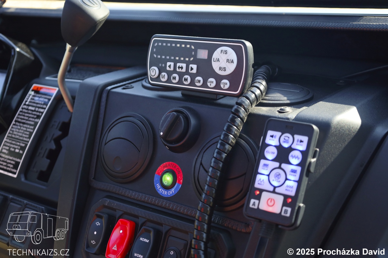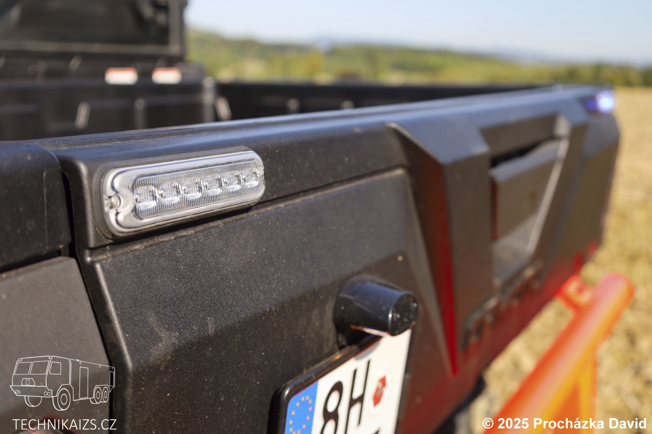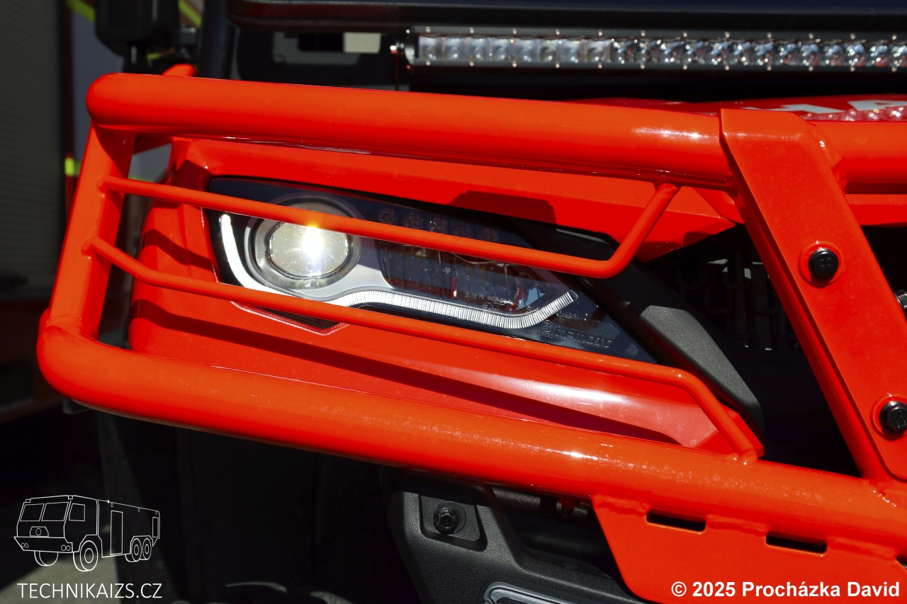 Bezpečnost a viditelnost zajišťuje výkonné přední i zadní LED osvětlení, včetně LED světel pro osvícení okolí vozu. Vozidlo je dodáno v barevném odstínu RAL 3024 a je doplněno červenomodrým výstražným zařízením.