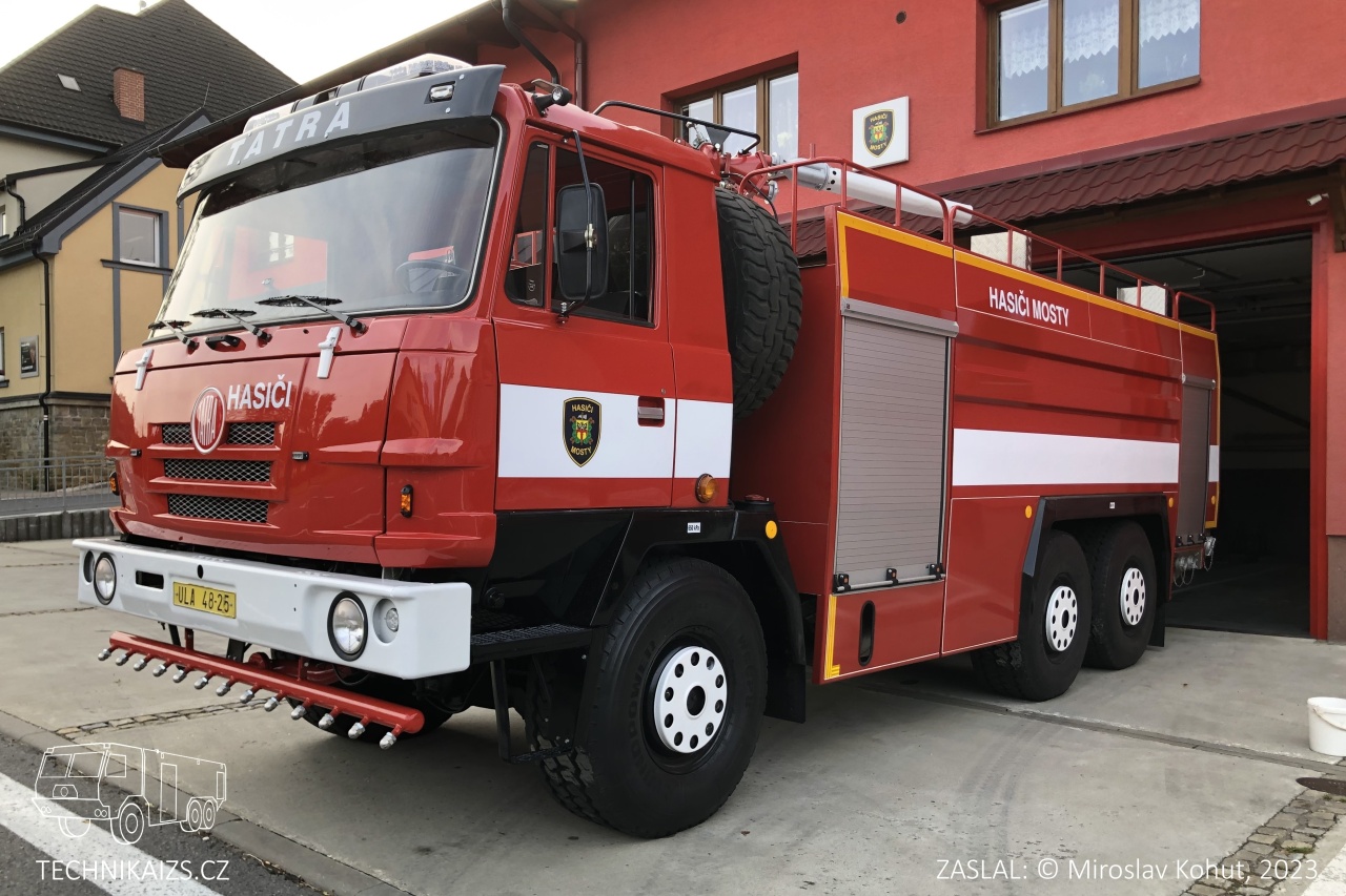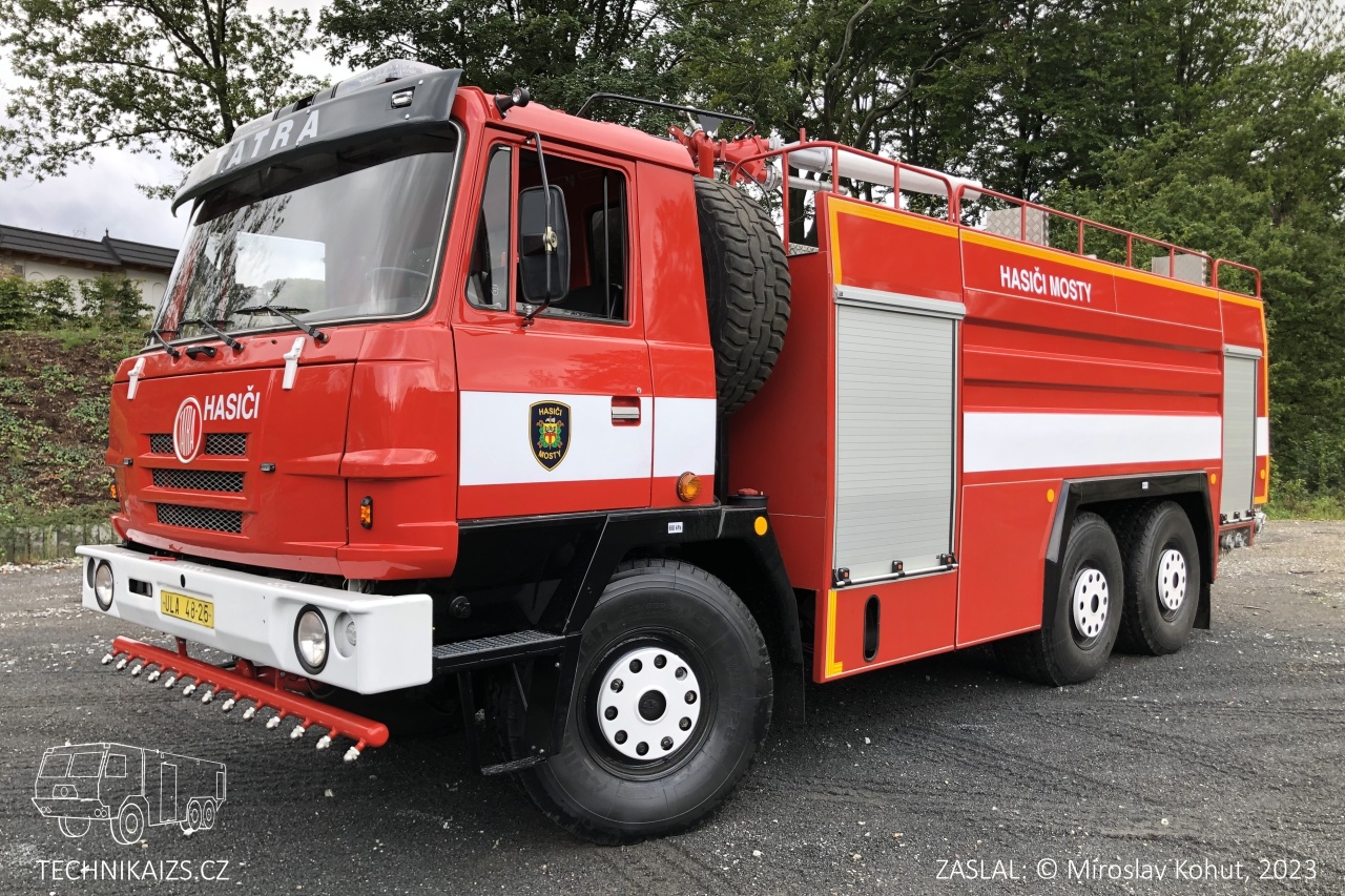 Doplňující info: V roce 2023 obec Mosty u Jablunkova pořídila pro svou jednotku od společnosti ZEKA Slavičín cisternovou automobilovou stříkačku Tatra 815 za 3 129 302 Kč. Cisterna původně sloužila u podnikové jednotky ve Spolchemii v Ústí nad Labem jako kombinovaný hasící automobil (viz. poslední foto v galerii).