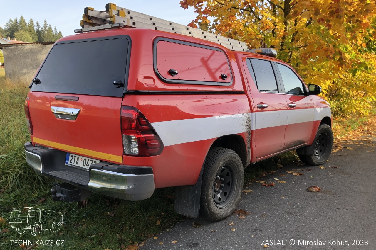Doplňující info: Na konci roku 2021 pořídila obec Mosty u Jablunkova pro své hasiče nový technický automobil Toyota Hilux, který nahradil dosluhující Mitsubishi L200. Červenou barvu tak vůz získal díky celopolepu fólií, firma SEAL se postarala o zabudování elektrického lanového navijáku. Další úpravy provedli hasiči svépomocí. V nákladovém prostoru vytvořili police a výsuvné plato, ukotvili potřebné vybavení a na střechu vozidla namontovali majáky a žebřík. Hilux je vybaven dvěma motorovými pilami, lezeckou výstrojí a lany, sadou vakuových matrací a dlah, zdravotnickým materiálem, ženijním a montážním nářadím, přilbami, kužely, kladkami a popruhy k lanovému navijáku. Veze i dva hasicí přístroje a další drobné příslušenství.