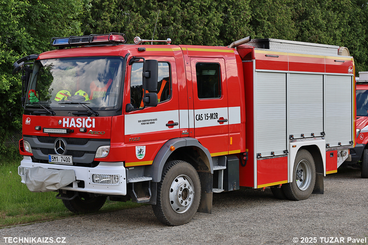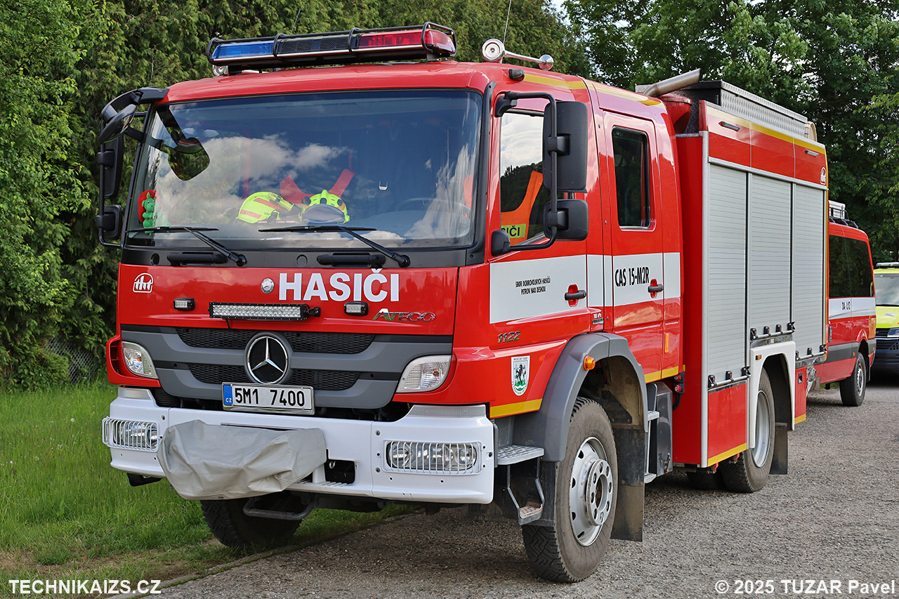 Doplňující info: CAS 15 MB Atego 1122 AF 4×4 je poháněna šestiválcovým přeplňovaným naftovým motorem o výkonu 160 kW za pomoci šestistupňové manuální převodovky. Nádrž pojme 2000 litrů vody a 200 litrů pěnidla, pořízena byla v roce 2013 za 4,658 mil. Kč.