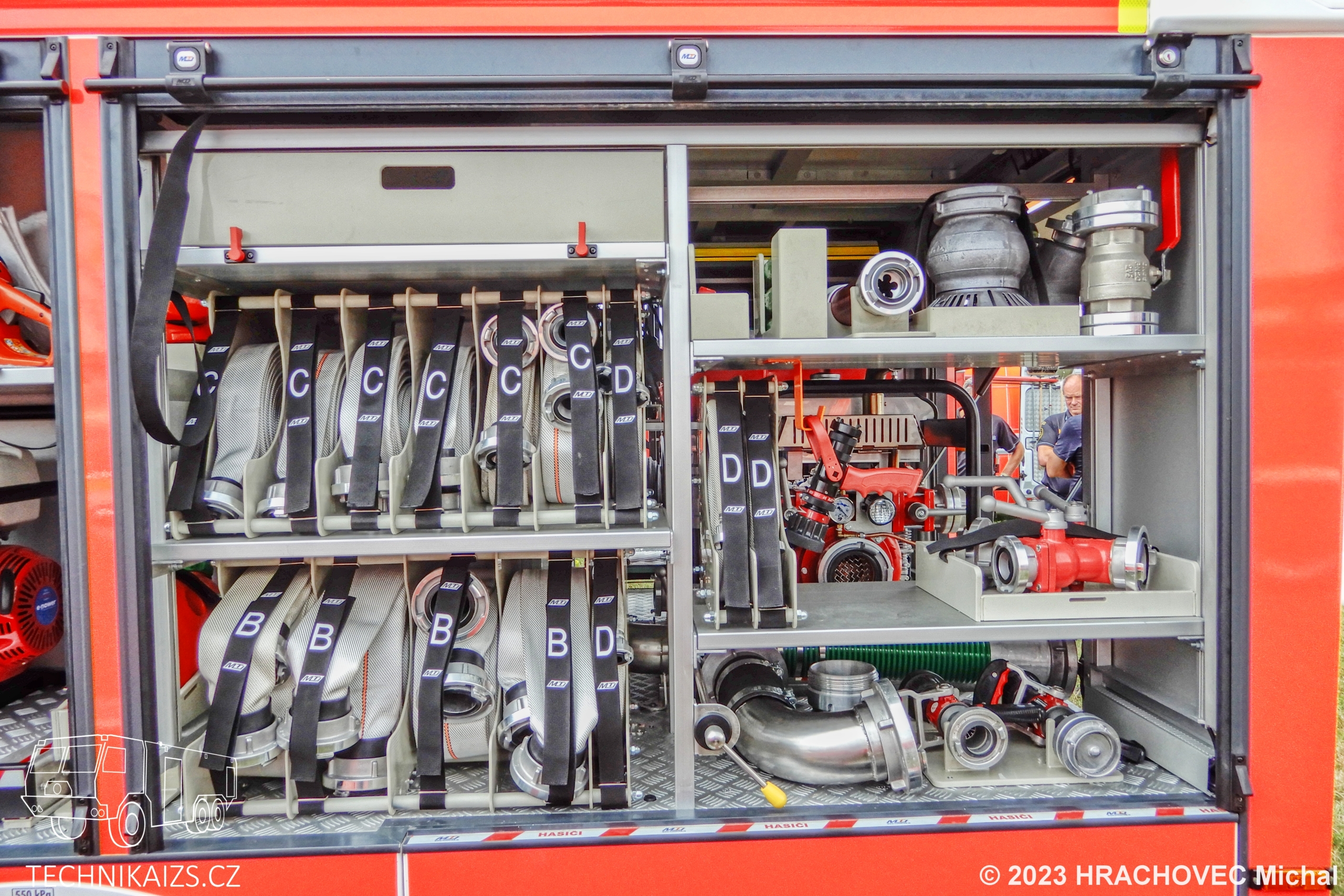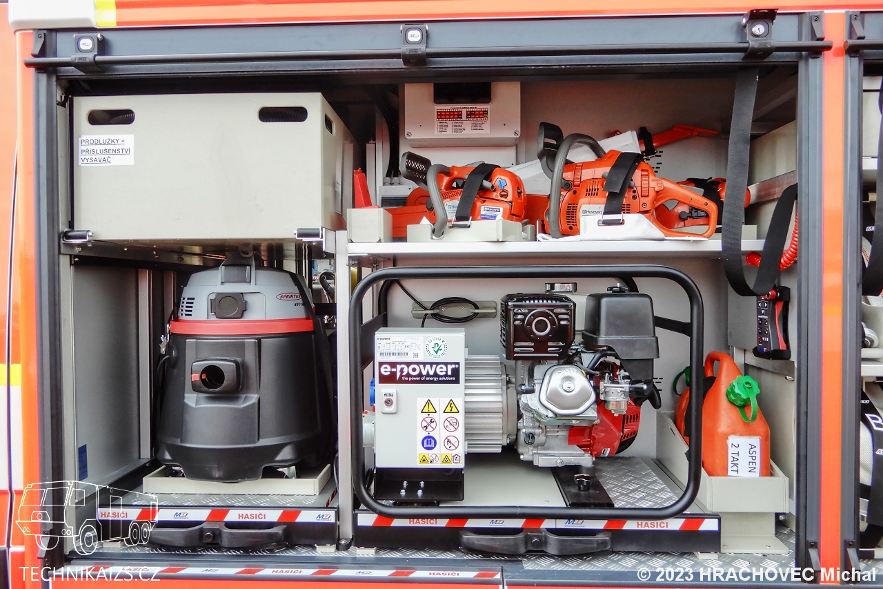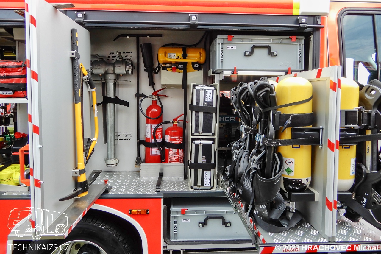 Doplňující info: V březnu 2023 jednotka dobrovolných hasičů převzala od společnosti MotoTruck nový dopravní automobil Iveco Daily za 3 751 000 korun včetně DPH v provedení s motorovou stříkačkou. Iveco Daily 70C18HA8 D–D70C je určen pro provoz na zpevněných komunikacích, poháněn je řadovým přeplňovaným čtyřválcem s automatickou převodovkou. Kabina je čtyřdveřová, šestimístná. Pro spojení slouží digitální vozidlový terminál uchycený mezi sedadly řidiče a spolujezdce. Na stejném místě najdeme čtveřici dobíjecích úchytů pro ruční svítilny a stejný počet určený pro ruční radiostanice. Na přístrojové desce je uchycen výjezdový tablet, nechybí kontrolní a ovládací panel požární nástavby a ovládání červenomodrého světelného a zvukového výstražného zařízení Whelen. V přední části vozu je uchycen elektrický lanový naviják s tažnou sílou 50 kN a s jištěním proti přetížení. Karosérie účelové nástavby tvoří samostatný konstrukční celek z plechů a profilů ze slitiny lehkých kovů technologií šroubovaných spojů, svařování a lepením. Na obou bocích je dvojice schrán pro příslušenství, kryté jsou hliníkovými roletkami. Integrovaná nádrž na vodu je vyrobena z vrstveného polypropylenu o objemu 1 000 litrů. Nádrž je vybavená odvzdušněním a přepadem proti přeplnění, stavoznakem s LED signalizací v zadní části automobilu a plnicím otvorem zakončeným spojkou B75. Na nádrž je napojen vysokotlaký hasicí agregát, který je uložen na výsuvném prvku v levé zadní schráně, v její konstrukci nechybí ani uzavíratelný sací ventil pro zásah přenosnou požární stříkačkou Alpha. Tu najdeme na výsuvném platu v zadní části automobilu. Osvětlení prostoru okolo automobilu je zajištěno vně umístěnými zdroji LED světel zapuštěných do boků a zadní části nástavby.