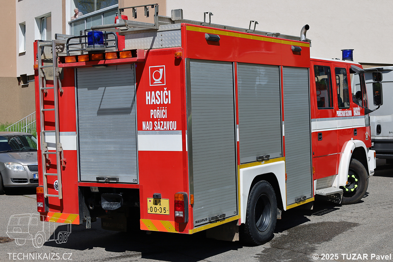 Doplňující info: CAS byla představena v roce 1998 a původně sloužila u HZS hlavního města Prahy na stanici 5 – Strašnice, odkud v roce 2010 putovala k JSDH Praha 11 – Chodov. V roce 2017 byla převedena ke stávající JSDH Poříčí nad Sázavou. Cisterna byla od počátku označována jako CAS 24, ale jmenovitý výkon čerpadla je 3200 l/min při tlaku 8 bar. Objem nádrže na vodu je 3000 litrů a 300 litrů pěnidla.