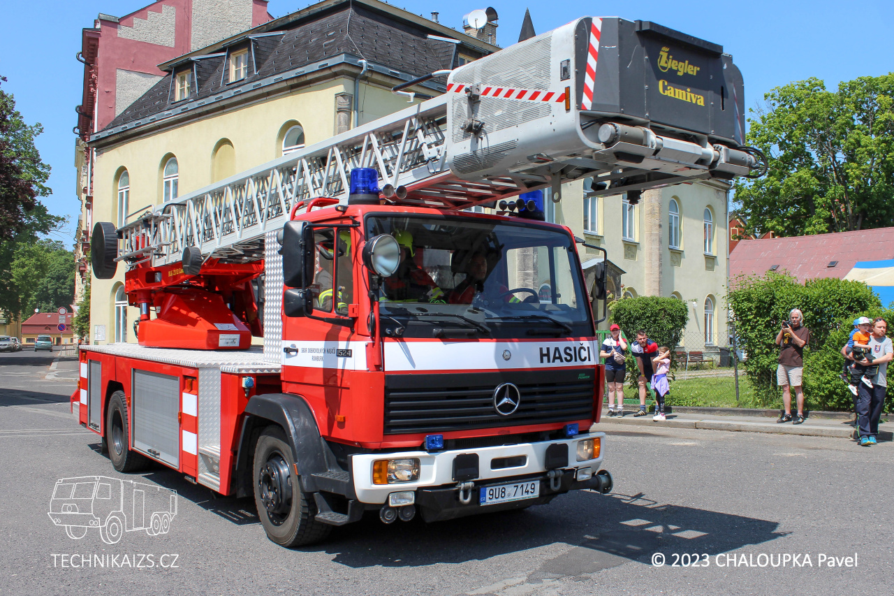 Doplňující info: Automobilový žebřík na podvozku Mercedes-Benz z roku 1996 s automatickou převodovkou a kabinou pro posádku 1+2. Nástavbu vytvořila francouzská firma Camiva, jedná se o žebřík s košem pro tři osoby s nosností 270 Kg a dostupnou výškou 30 metrů. Na koš se dají připevnit nosítka, přídavná světla a proudnice, ze které se dá hasit, popřípadě prodloužit útočný proud do budovy. Žebřík může zasahovat i pod úroveň vozidla, pracovat na vodních tocích a hladinách. Na sadě je přidělané jeřábovací oko, ze kterého se může provádět záchrana osob a zvířat z hloubky.