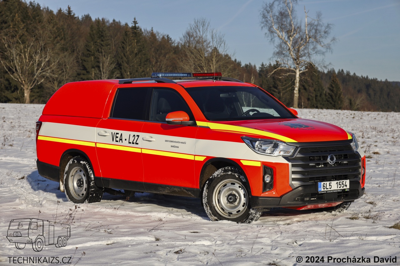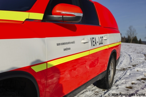 Doplňující info: Automobil je vybaven 2.2litrovým přeplňovaným vznětovým čtyřválcovým motorem, který poskytuje výkon 202 koní. Tento model disponuje přepínatelným pohonem všech kol a je osazen šestistupňovou manuální převodovkou. Vůz je v odstínu RAL 3024, na zadní části je šrafování Chevron. VEA je vybaveno světelným výstražným zařízením v červenomodré kombinaci. Kabina umožňuje přepravu posádky v uspořádání 1+4.