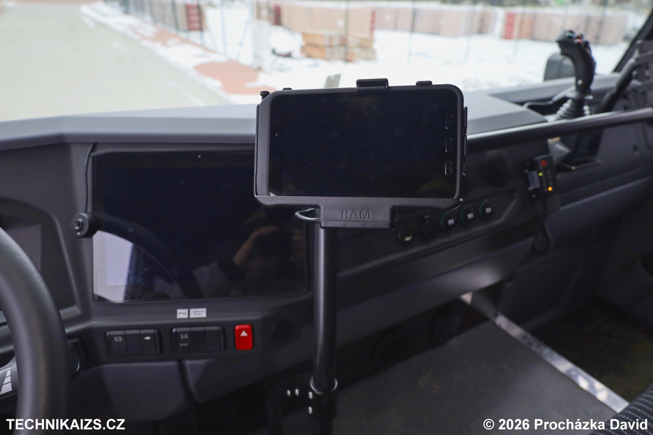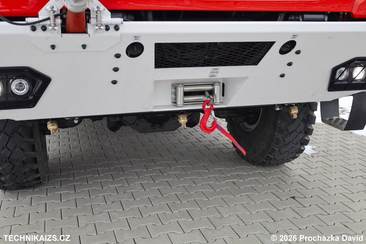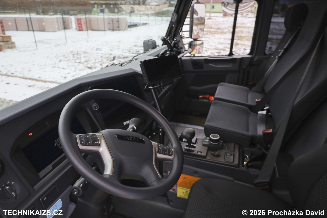 Kabina osádky je jednoprostorová, čtyřmístná a vybavená nezávislým topením, klimatizací, autorádiem s handsfree, analogovou vozidlovou radiostanicí, přípravou pro digitální terminál a dobíjecími úchyty pro svítilny, radiostanice a tablet. Součástí výbavy je centrální zamykání, elektricky ovládaná okna, nastavitelný volant i sedadlo řidiče, ocelový přední nárazník s vyprošťovacími čepy o průměru 40 mm a elektrický lanový naviják s tažnou silou 51 kN.