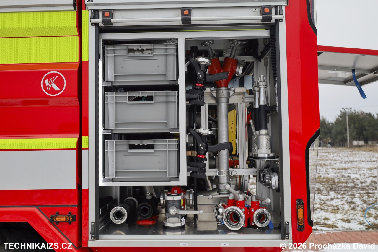 Úložné prostory jsou dimenzovány pro přepravu dýchací techniky, hadic, čerpadel, motorové pily, nářadí a dalšího požárního příslušenství, včetně kazet a přepravek systému 600 × 400 mm. Zadní část nástavby obsahuje obslužné místo požárního čerpadla přístupné ze země, vybavené minimálně čtyřmi výtlačnými hrdly B a dvěma plnicími hrdly B.