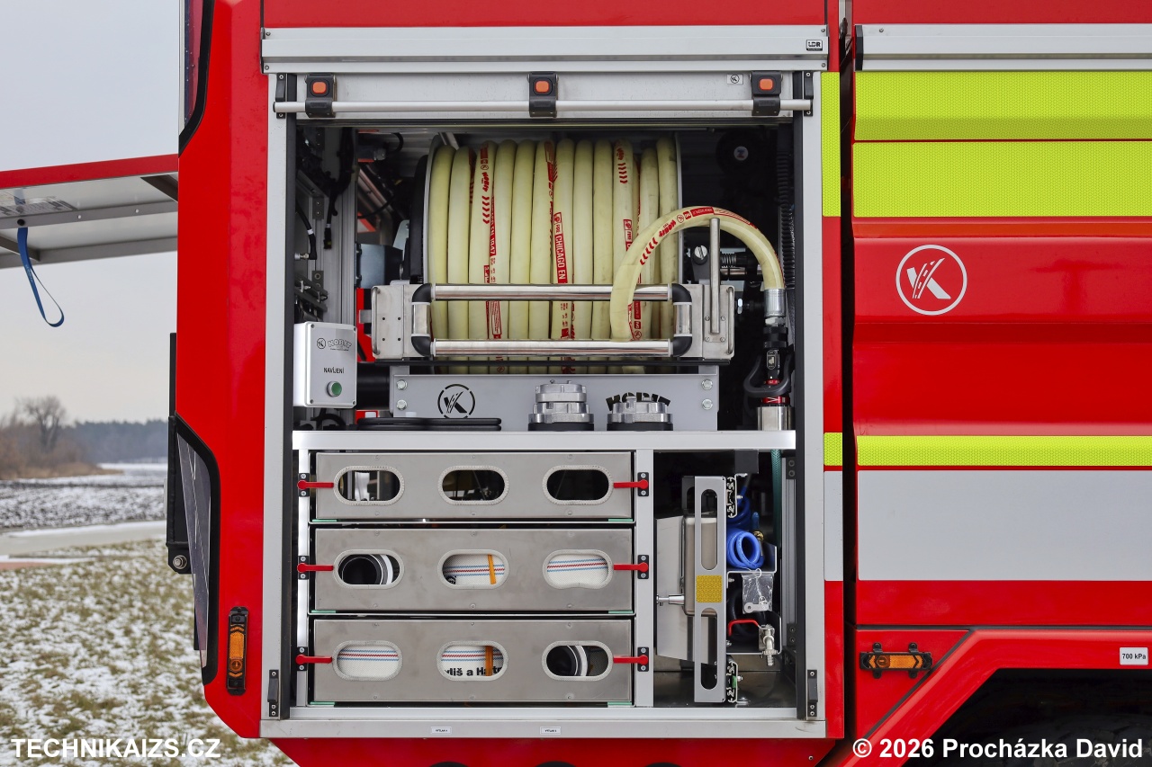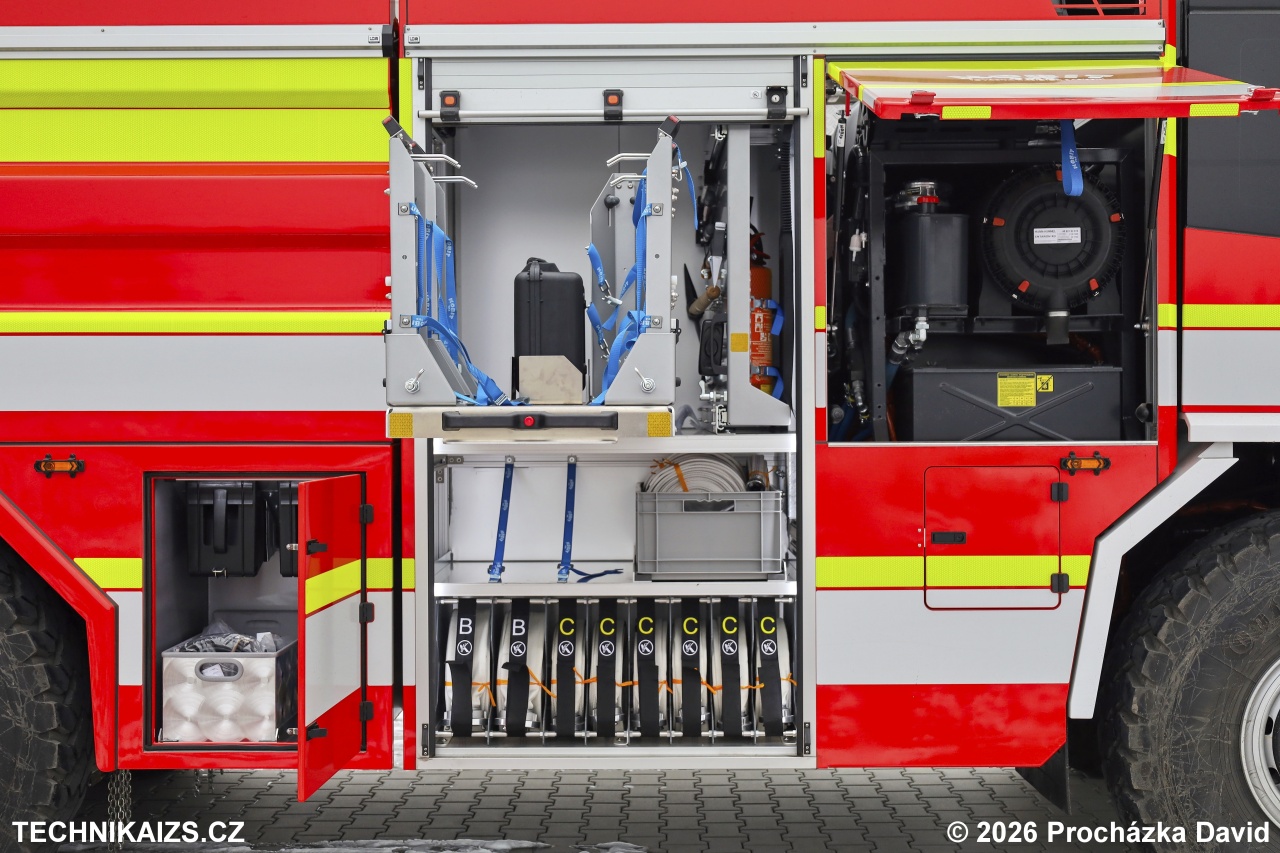 Nádrž na hasivo je vyrobena z nerezové oceli AISI 316L a sestává z nádrže na vodu o objemu 9 000 litrů a samostatné nádrže na pěnidlo. Součástí výbavy je vysokotlaký naviják s hadicí o délce nejméně 60 m, odnímatelná lafetová proudnice s průtokem až 2 000 l/min, dálkově ovládaná přední lafetová proudnice s průtokem nejméně 450 l/min a asanační lišta v přední části vozidla. CAS je dále vybavena pneumaticky výsuvným osvětlovacím stožárem o výšce 5 m s LED světlomety o celkovém světelném toku 30 000 lm.