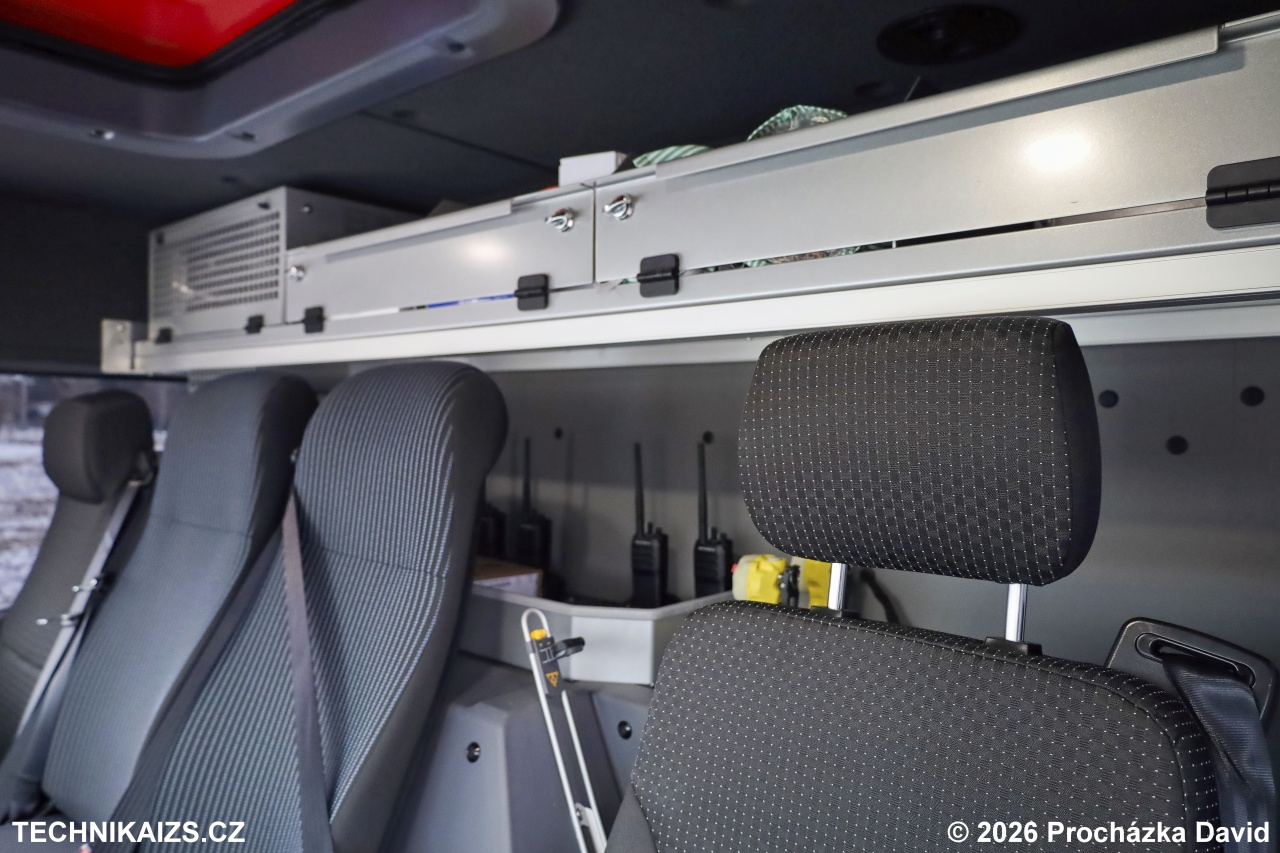 Součástí vozidla je kamerový systém se záznamem obrazu a zvuku, zadní couvací kamera, pracovní LED osvětlení okolí vozidla, oranžová výstražná LED alej, sdružená zásuvka 230 V pro dobíjení akumulátorů a doplňování tlakového vzduchu kompatibilní se systémem Rettbox Air a tažné zařízení pro brzděný přívěs o hmotnosti 3 500 kg. Barevné provedení vozidla je v odstínu RAL 3020, doplněné o retroreflexní pruhy.