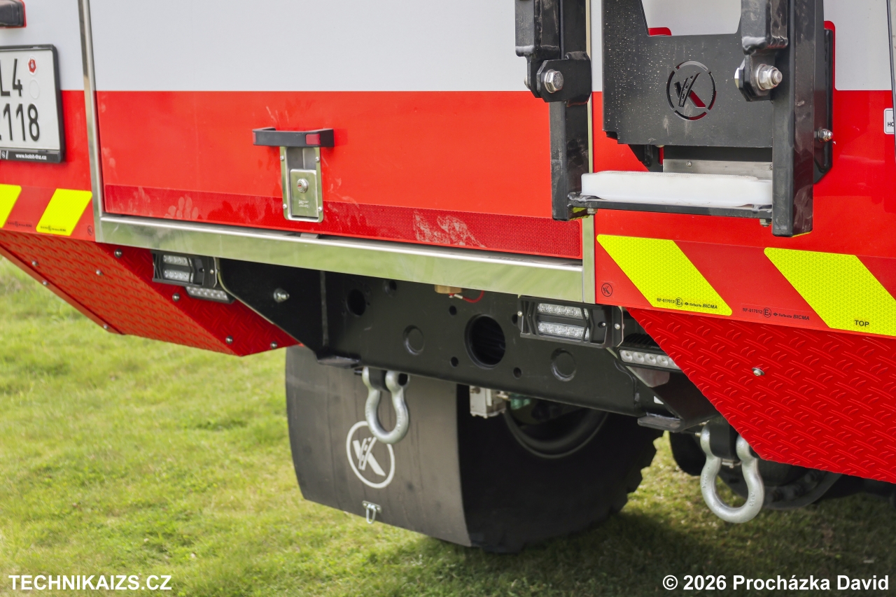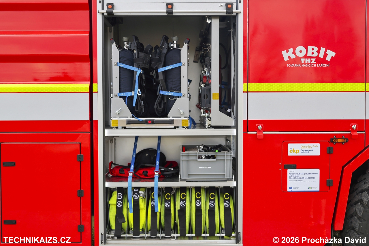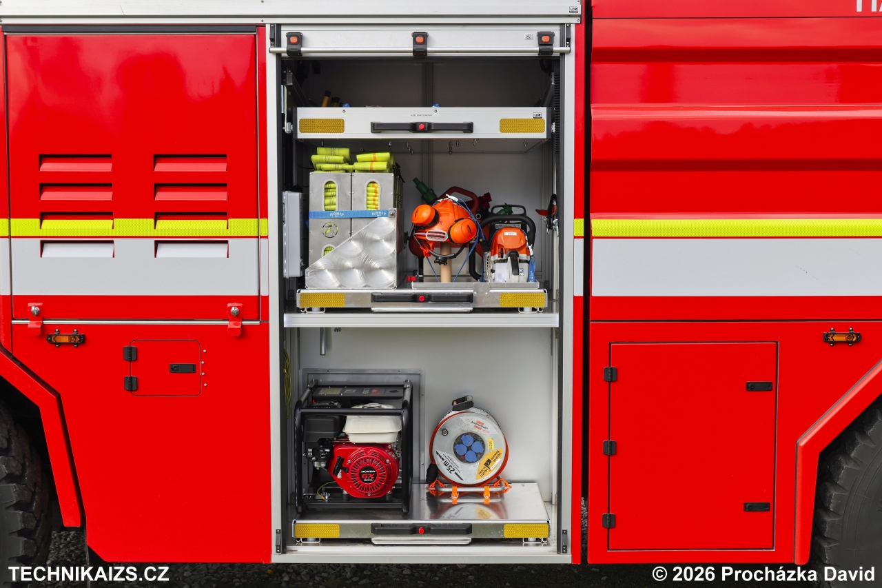 Doplňující info: CAS je konstruována v hmotnostní třídě S s největší technicky přípustnou hmotností 26 000 kg. Vozidlo je postaveno na podvozku 3 kategorie určené pro terénní provoz, s uspořádáním náprav 6×6. Pohon přední nápravy je připojitelný a diferenciály hnacích náprav jsou vybaveny uzávěrkami. Podvozek umožňuje regulaci světlé výšky pod nápravou v rozsahu minimálně +90 až −120 mm vůči provozní světlé výšce. Brodivost vozidla dosahuje 1 200 mm a je zajištěna statická stabilita při bočním náklonu nejméně 30°. Součástí výbavy je lanový naviják o síle 51 kN. CAS je poháněna vznětovým motorem o výkonu 340 kW. Přenos výkonu zajišťuje automatická převodovka ZF Traxon 12TX2610TO, která je vybavena pomocným pohonem pro požární čerpadlo. Tento pomocný pohon je možné využívat i během jízdy vozidla. Kabina osádky je jednoprostorová, nedělená, určená pro přepravu čtyř osob a vybavená dvěma dveřmi. Uvnitř kabiny se nacházejí čtyři dobíjecí úchyty pro ruční svítilny, čtyři dobíjecí úchyty pro přenosné radiostanice a v dosahu sedadla velitele najdeme výjezdový tablet. Kabina je dále vybavena kovovými kryty zpětných zrcátek. Vozidlo je osazeno zásuvkou Rettbox Air 230 V se systémem inteligentního dobíjení akumulátorových baterií, která je sdružena s přípojným místem pro doplňování tlakového vzduchu. Karosérie účelové nástavby je vyrobena z plechů a profilů ze slitiny lehkých kovů, a to technologií prizmatických šroubovaných spojů a lepení. Po stranách nástavby jsou umístěny čtyři úložné prostory pro požární příslušenství, opatřené roletkami z lehkého kovu s průběžnými madly v celé šířce. Hasící zařízení prvotního zásahu je situováno v pravé zadní části nástavby. Nádrž na hasivo je vyrobena z nerezové oceli. CAS je vybavena odnímatelnou lafetovou proudnicí THZ OLP s hubicí pro plný i roztříštěný proud, s maximálním jmenovitým průtokem 2 000 l·min⁻¹, účinným dostřikem plným proudem 50 m a možností nastavení průtoku. Součástí výbavy je také nárazníková lafetová proudnice a asanační lišta. Pro osvětlení bezprostředního okolí slouží LED světla umístěná na obou bocích nástavby, zadní část je vybavena výstražnou LED svítilnou vyzařující oranžové světlo. Vozidlo je dále osazeno osvětlovacím stožárem. Barevné provedení vozidla kombinuje bílou barvu RAL 9003 a červenou barvu RAL 3020