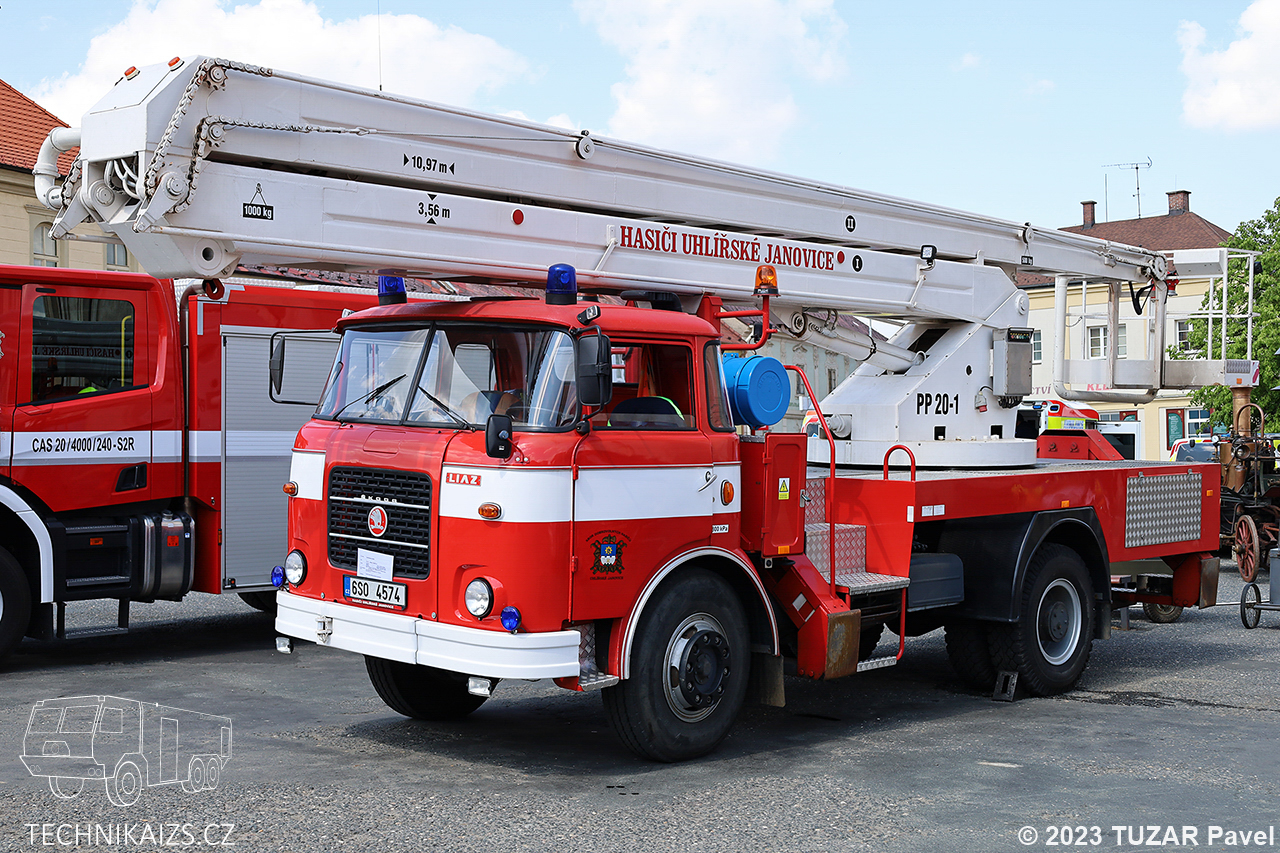 Doplňující info: Automobilová plošina byla pořízena do sboru v roce 2007 za 50 tisíc korun od Barrandovských ateliérů. Svépomocí ji dobrovolní hasiči kompletně zrekonstruovali a na vozu strávili 1736 hodin. Mimo technické zásahy či požáry je hojně využívána také k údržbě budov a zařízení ve vlastnictví města. Koš je vybaven lafetovou proudnicí.