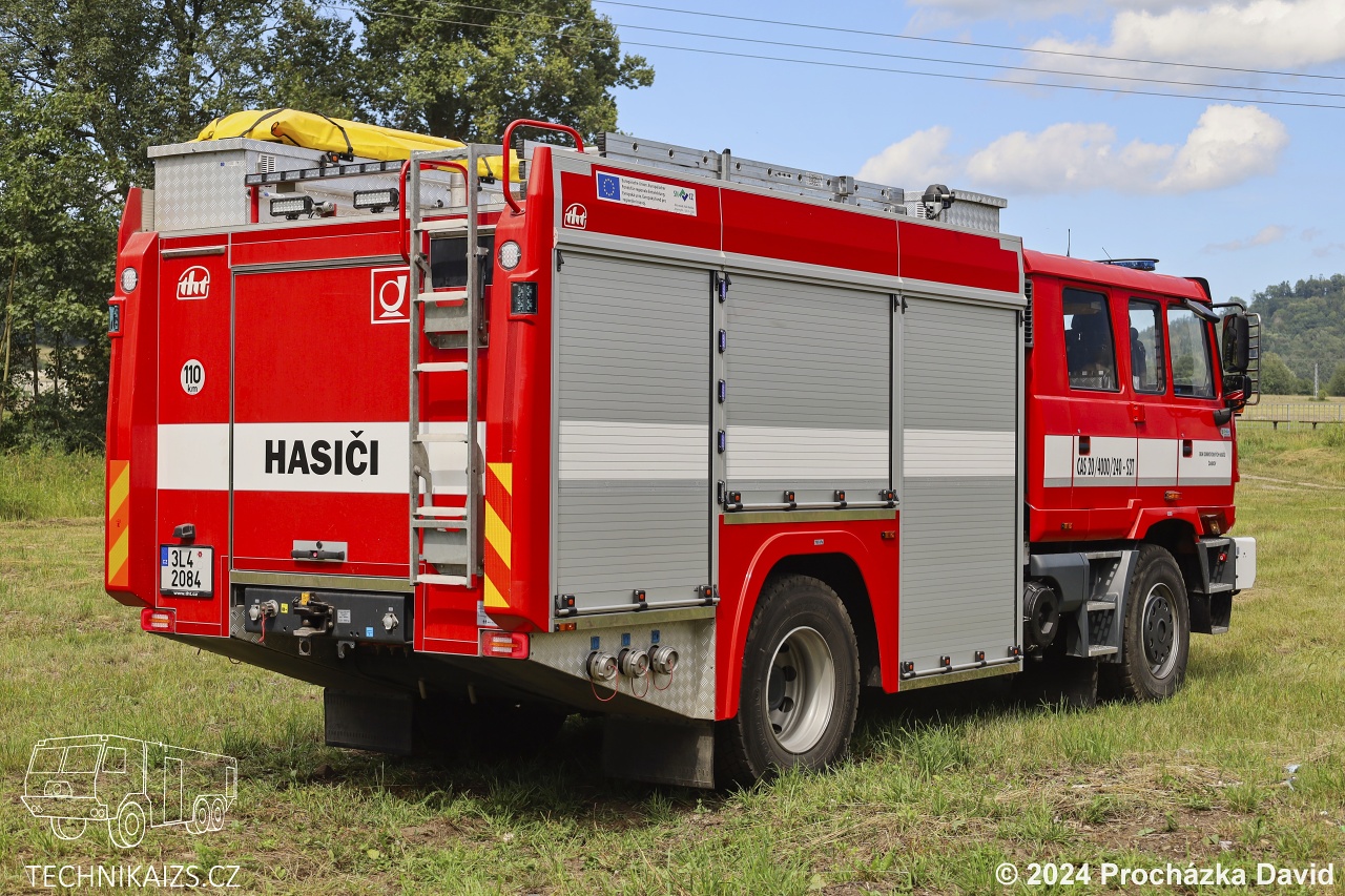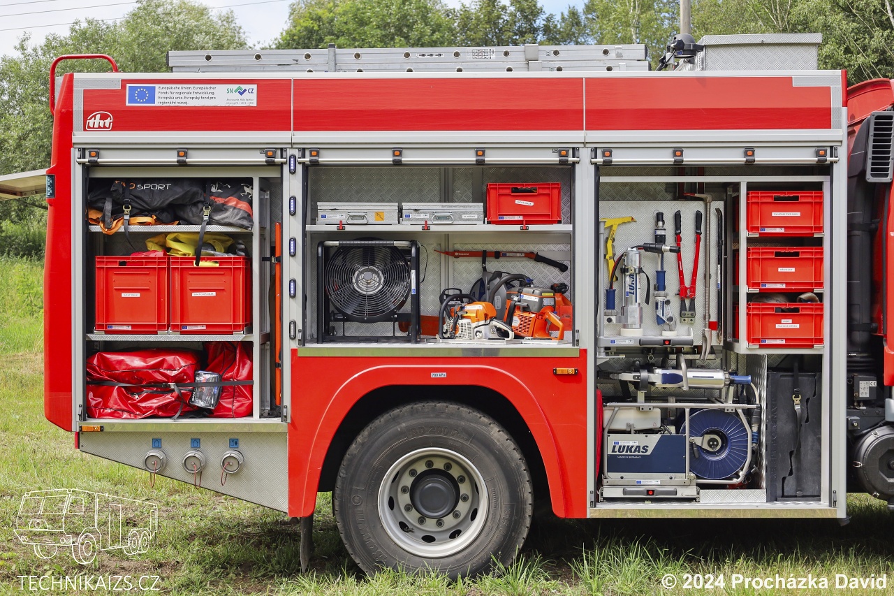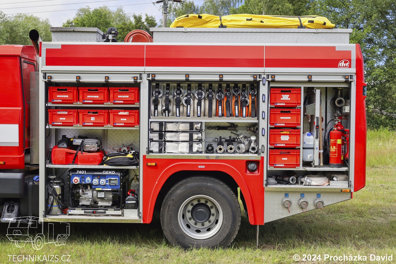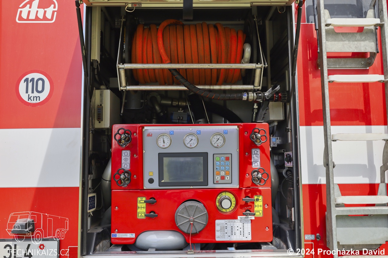 Doplňující info: O pohon se stará osmiválec se 325 kW spřažen s manuální převodovkou. Na zadní nápravě jsou namontovány podmetací řetězy. Nástavba je vyrobena z hliníkových profilů jako jeden celek a oplechována hliníkovým plechem, nádrž na hasivo je vyrobena z nerezavějící oceli. Vozidlo je vybaveno systémem řízení požárních nástaveb s využitím CAN sběrnice. To umožňuje z jediného místa zjistit informace o otevřených roletách, dveřích, sklopených stupačkách, vysunutém osvětlovacím stožáru, zapnutých výstražných světlech, o zapnutém zapalování, otáčkách motoru a atd. Mezi kabinou osádky a nástavbou je umístěn pneumaticky výsuvný osvětlovací stožár se čtyřmi LED světlomety. Cena vozidla byla 7 861 370 Kč včetně DPH.