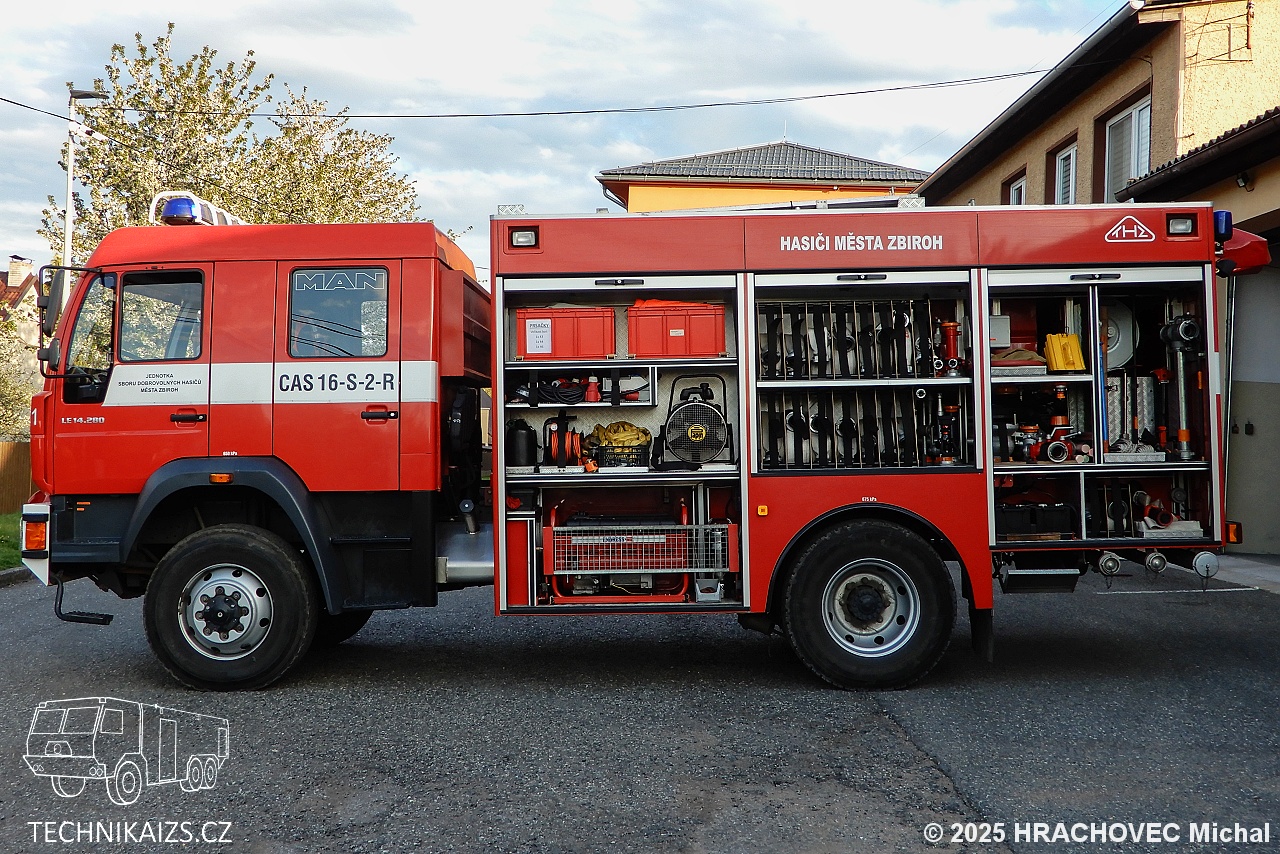 Doplňující info: Předáno v prosinci roku 2006 během slavnostního shromáždění k 125. výročí založení Sboru dobrovolných hasičů Zbiroh. Ve výbavě cisterny najdeme elektrocentrálu, přetlakový ventilátor Papin, dýchací techniku, ruční nářadí, termokameru, motorovou a rozbrušovací pilu či hydraulické vyprošťovací zařízení Holmatro.