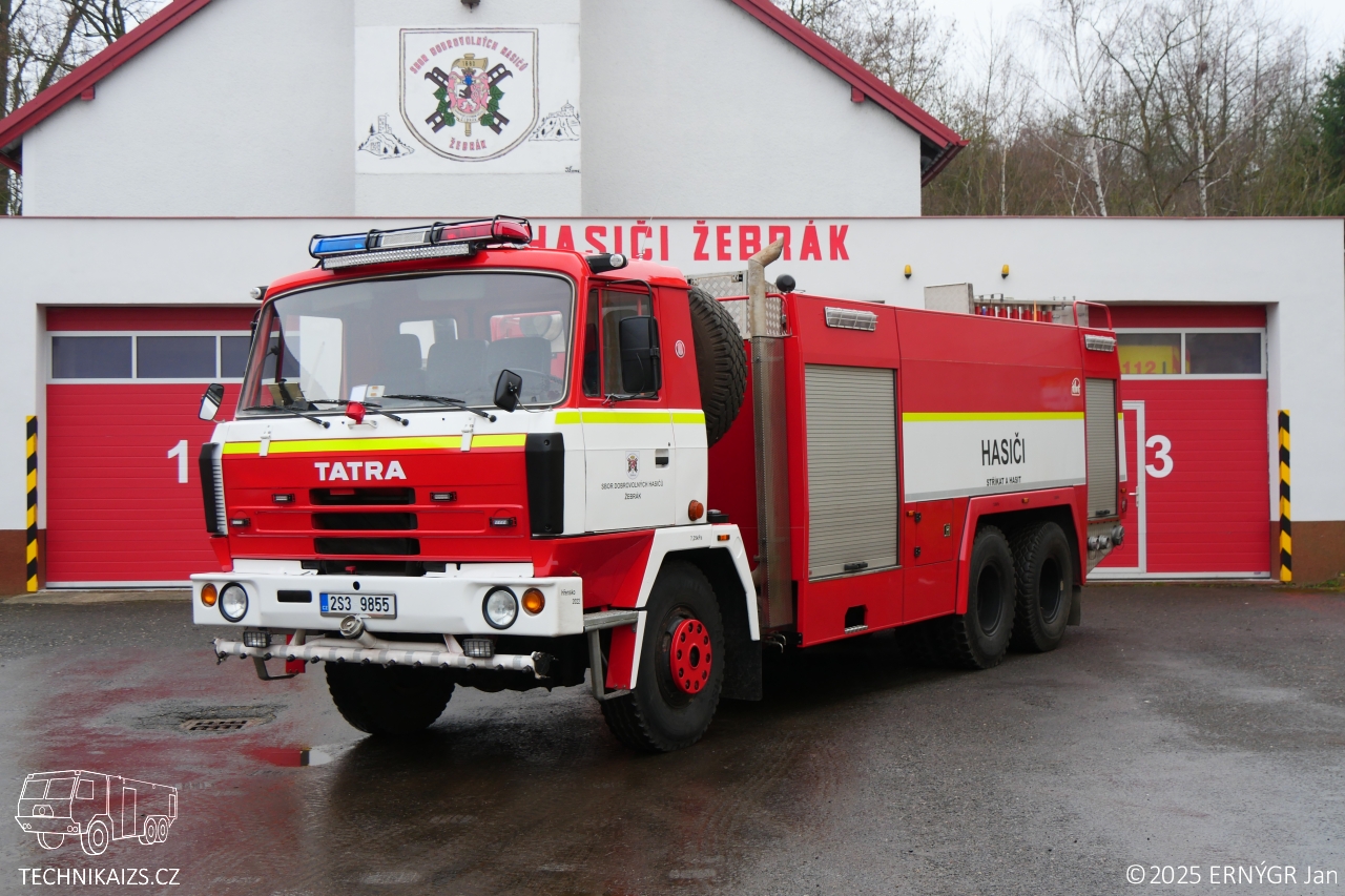 Doplňující info:CAS 32/8200/800 na podvozku T815 PR3 27 208 6×6.2 což je nestandartní podvozek pro tato vozidla. Původně byl vůz postaven v roce 1994 na podvozku z roku 1988 jako práškový hasící automobil a sloužil u HZSp Spolana Neratovice. V roce 2007 jej zakoupilo město Žebrák již v provedení CAS 32. Vozidlo je výjimečné svojí délkou. Kdy jen rozvor je 4500 + 1320 mm, standartní CAS 32 mají rozvor 3700 + 1320 mm. Celková délka vozidla je 9,5 metru což znamená že na délku je vozidlo o metr delší než klasické CAS 32 na podvozku T815 PR2.