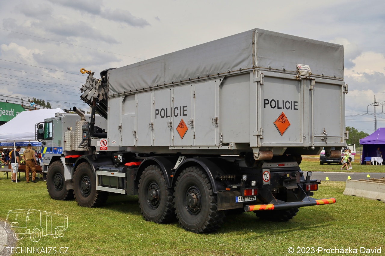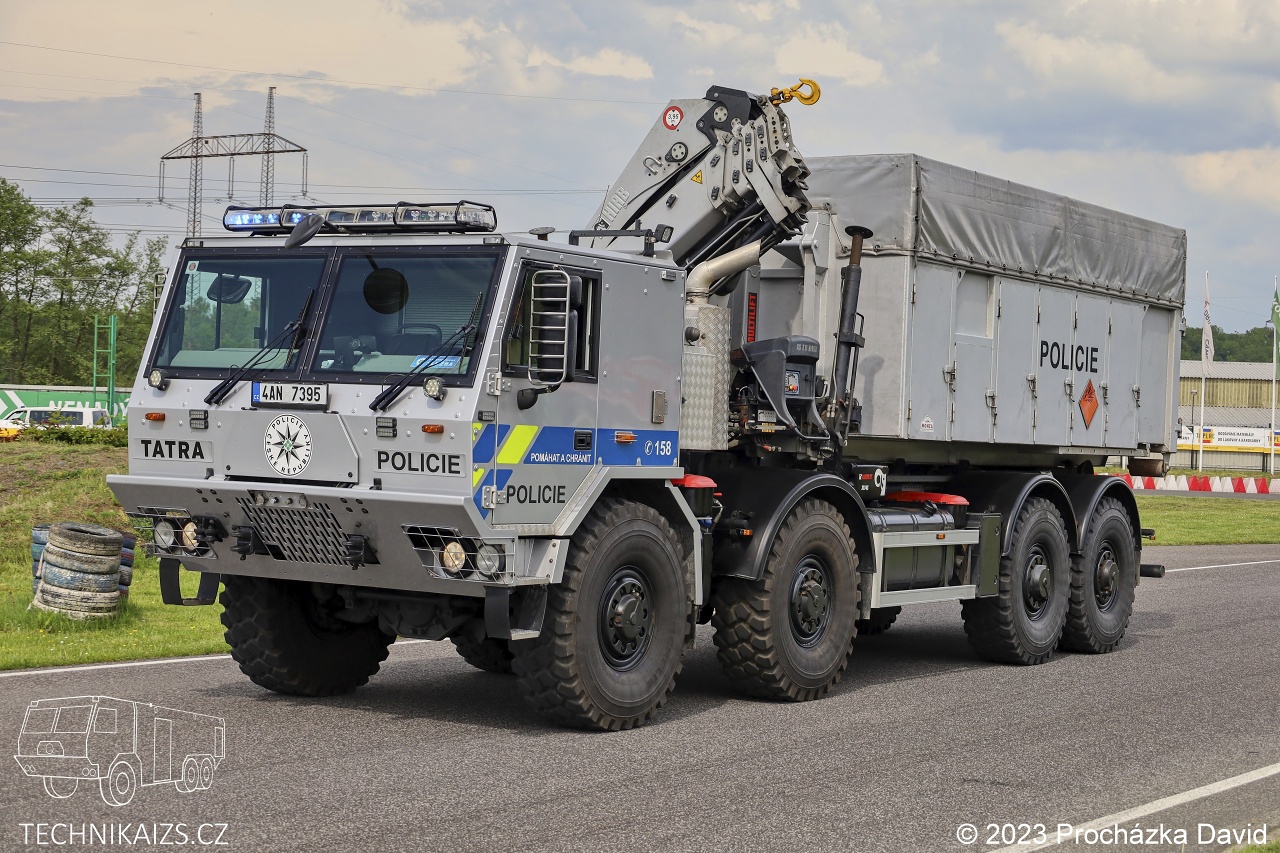 Doplňující info: V lednu roku 2016 došlo v muničním skladu Vrbětice k předání nového nákladního vozidla Tatra 815-7. Vozidlo slouží pro přepravu nebezpečného materiálu. Jedná se o nákladní vozidlo splňující požadavky přepravy ADR, s odpovídající balistickou ochrannou. Tatra 815-7 byla pořízena v rámci projektu „Zvýšení akceschopnosti Policie ČR při řešení mimořádných událostí“, který je financován z fondů Evropské unie, Integrovaného operačního programu. Celková plánovaná částka projektu přesahovala jednu miliardu korun. Cena tohoto speciálního vozidla včetně příslušenství je 11,5 milionů korun, součástí Tatry je také hákový nakladač kontejnerů a dva speciálně upravené kontejnery.