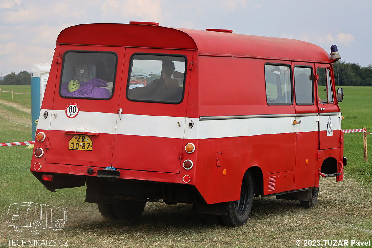 Doplňující info: Vozidlo z roku 1967 sloužilo původně u Veřejné bezpečnosti. V roce 1975 převeden k dobrovolným hasičům, kde byl přestavěn pro hasičské účely. Slouží pro přepravu osob a materiálu.