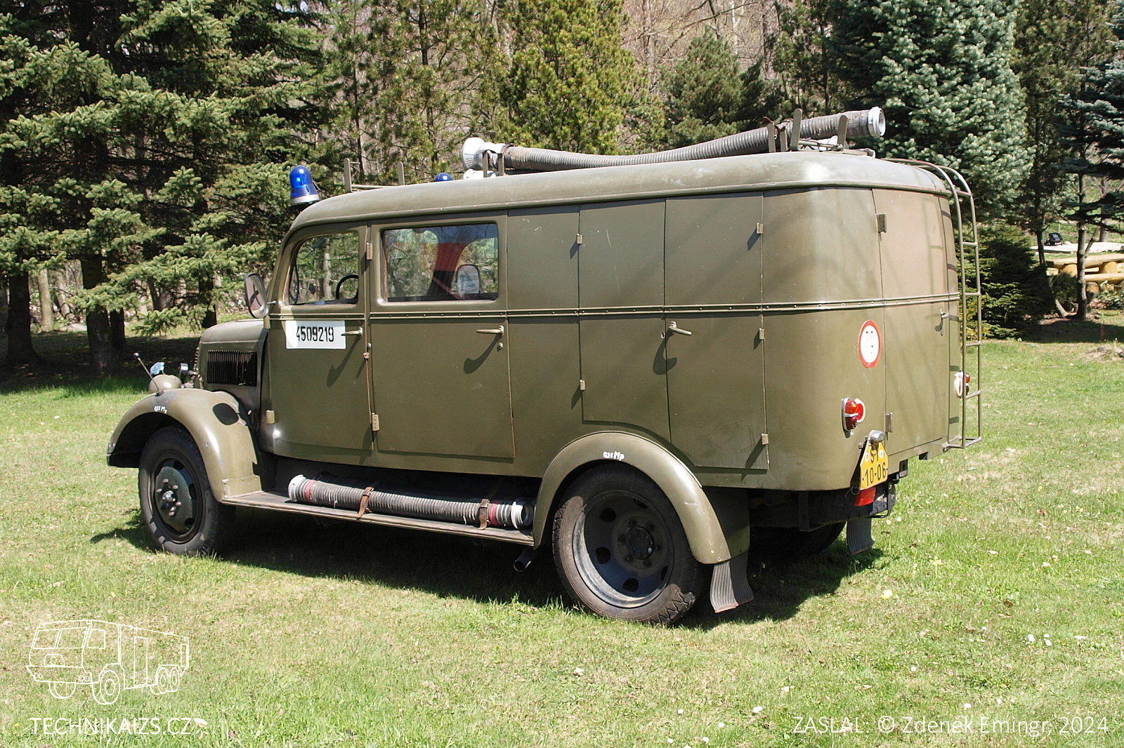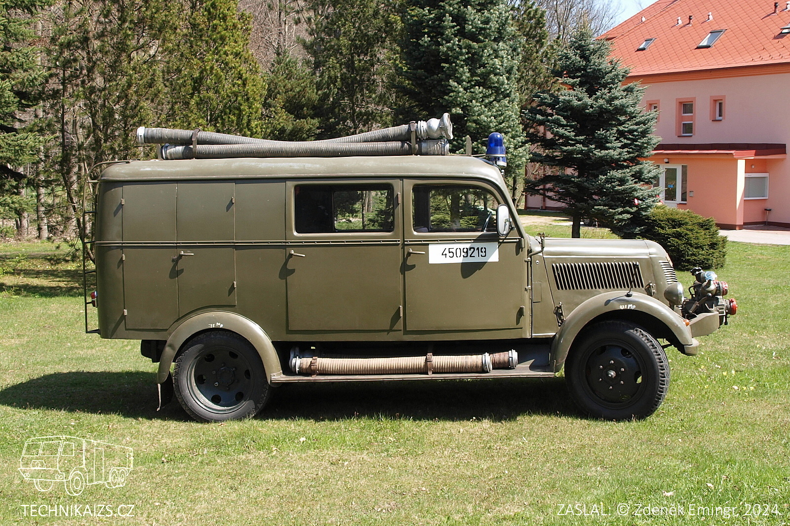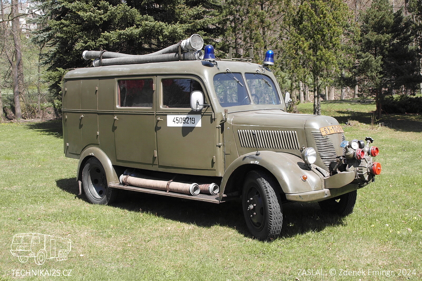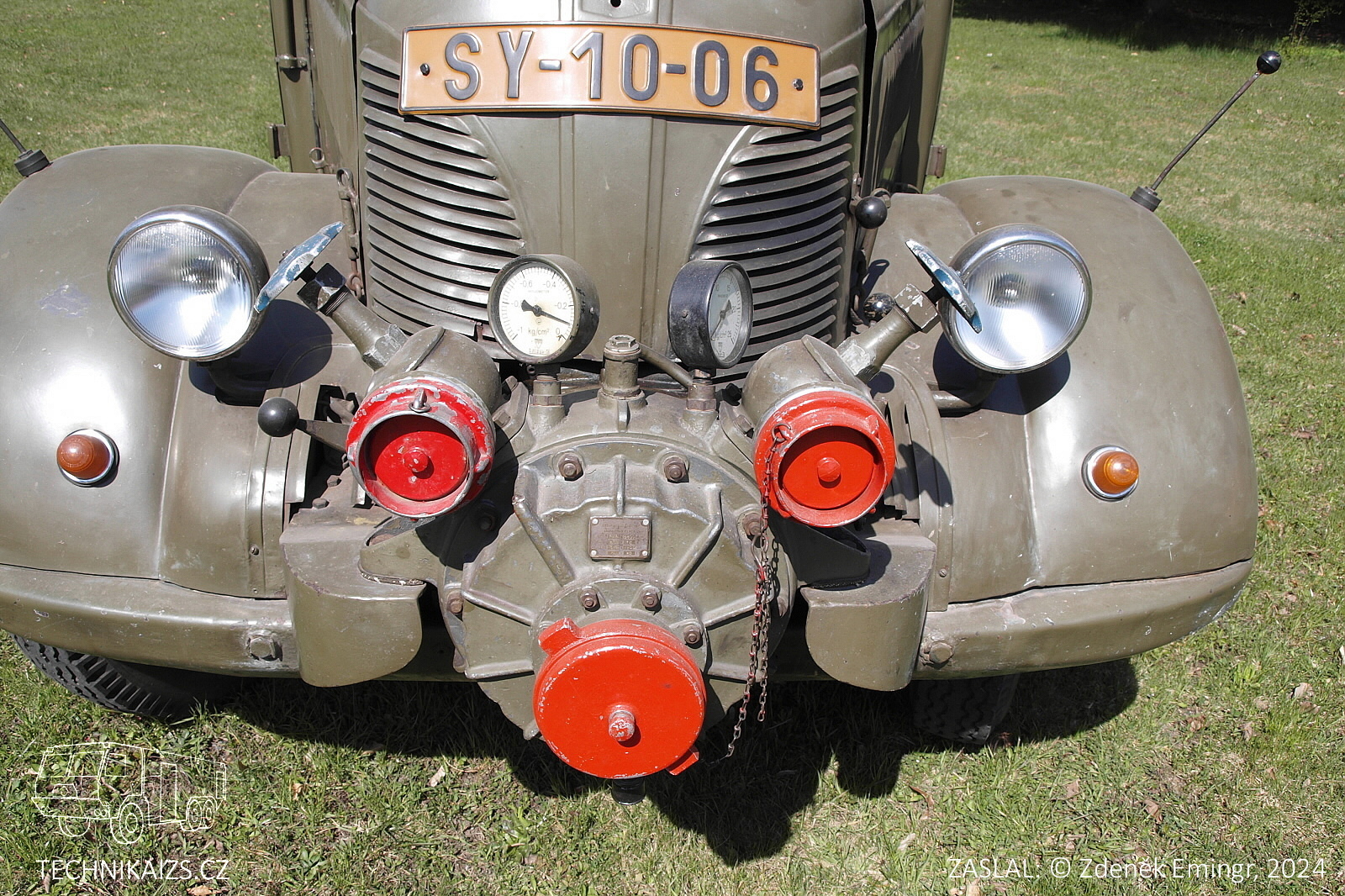 Doplňující info: Automobilová stříkačka Phänomer Granit 27 byla vyrobena v roce 1939 a na hasičský vůz přestavěna v roce 1943. Původním majitelem byl Státní požární dozor v Poličce – v roce 1956 předáno sboru v Oldřiši. Vozidlo získalo novější motor z modelu Granit 30 a v roce 1960 opatřeno požárním čerpadlem o výkonu 1600 litrů za minutu. Foceno v roce 2010.