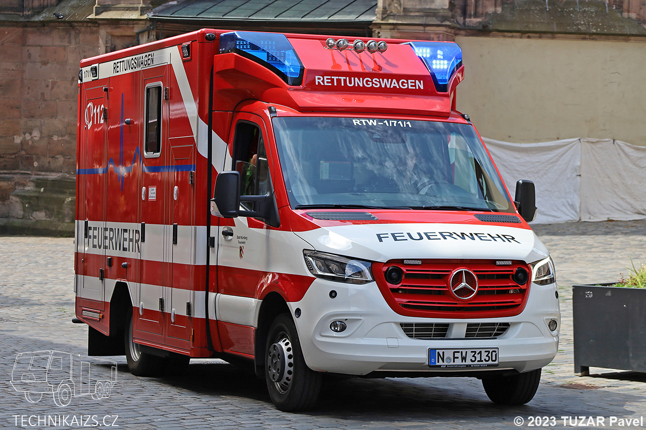Doplňující info: Profesionální hasiči v Norimberku mají ve službě sanitní vůz, který primárně není integrován do systému záchranné služby, ale v případě vysokého vytížení je schopen na žádost ZZS vypomoci. Hasiči jej primárně využívají na zdravotnické zajištění rizikových zásahů hasičů. Výbavou se neliši od standartního sanitního vozu, mimo jiné zde nalezneme i resuscitační pomůcku LUCAS.