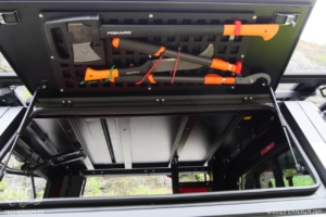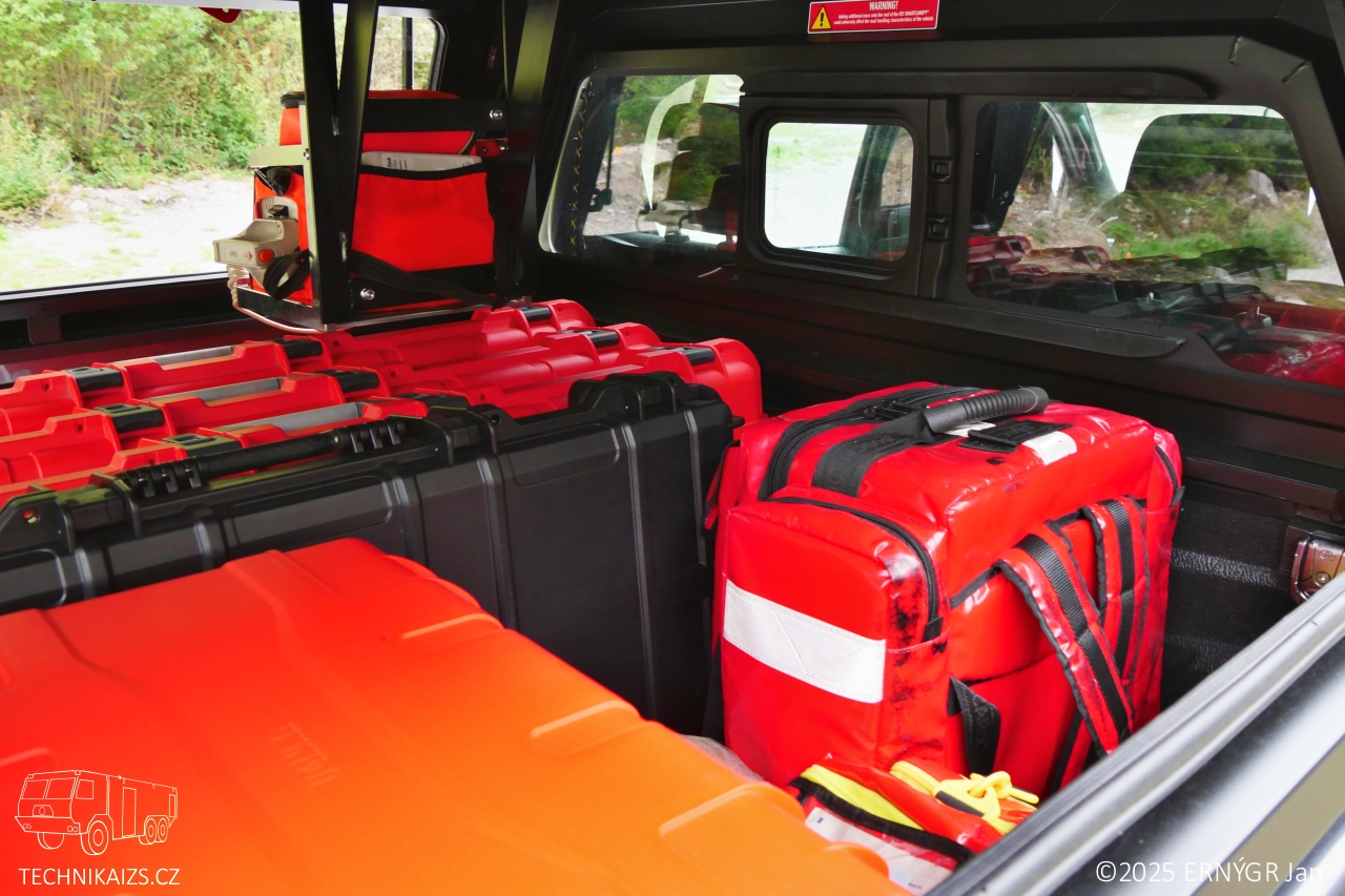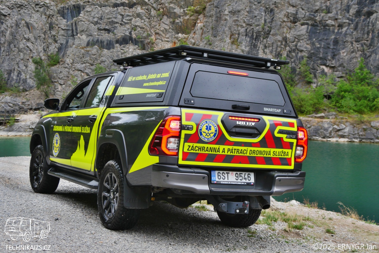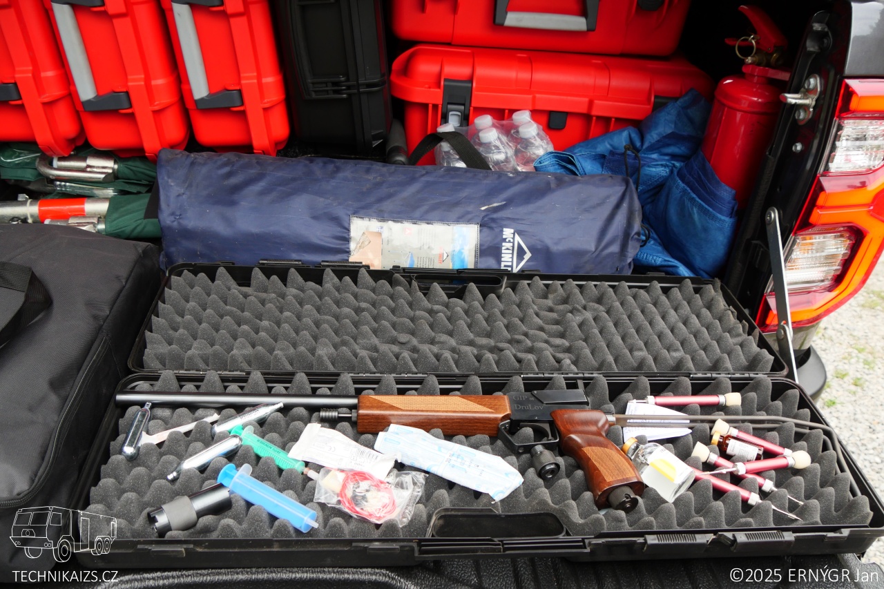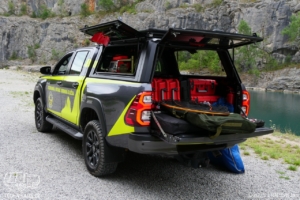 Vybavení je uloženo v hardtopu RSI EVO ADVENTURE HILUX od společnosti Smarcap. Uvnitř hardtropu najdeme kromě dronového vybavení též vybavení zdravotnické. Vozidlo je vybaveno zdravotnickým vybavením podobným vozidlům RZP (Základní zdravotnický materiál, monitor životních funkcí s defibrilátorem, vakuová matrace či dlahy). Nalezneme zde mimo jiné i signalizační pistoli či pušku k uspávání divoké zvěře. V úložném prostoru si piloti mohou pro případné zlepšení viditelnosti obrazu z dronů instalovat monitor do kterého lze přenášet obraz.