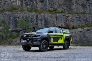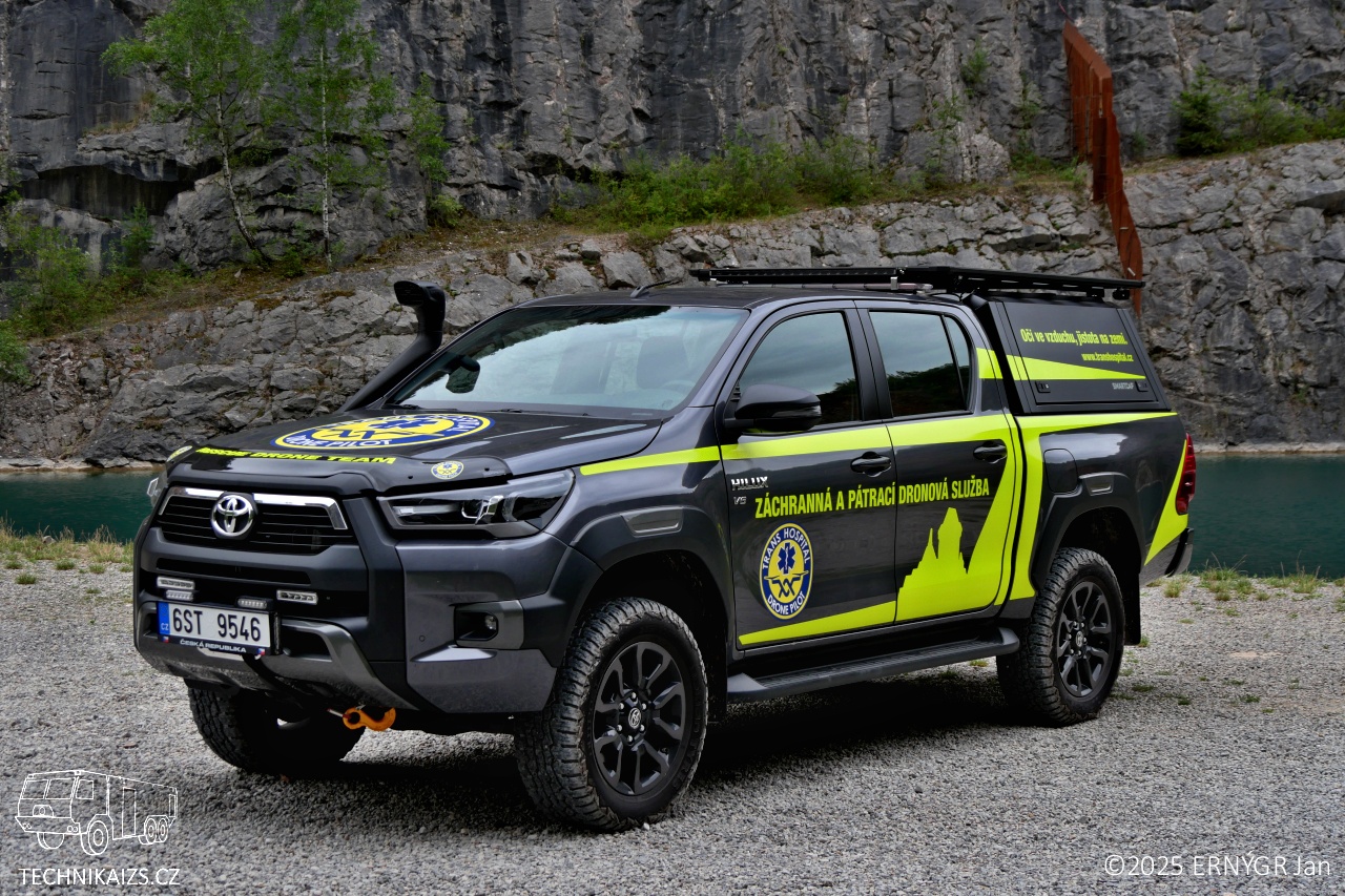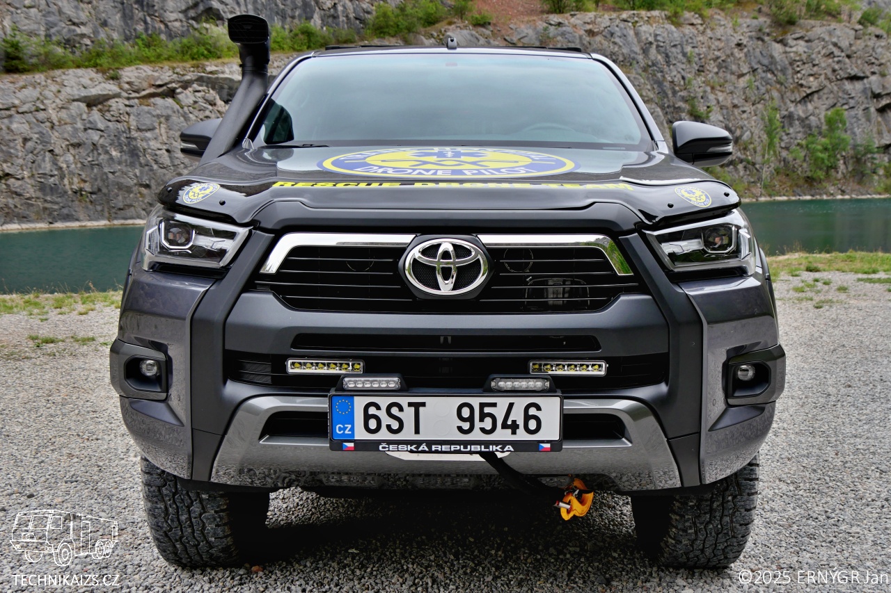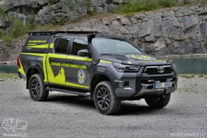 Doplňující info: Soukromá zdravotnická záchranná služba Trans Hospital Plus s.r.o zařadila v srpnu do svého vozového parku v Evropě raritní Toyotu Hilux Adventure, s atmosférickým čtyřlitrovým vidlicovým šestiválcem 1GR-FE, splňující emisní normu Euro 6. Ten se pod kapotu osmé generace dostal ze staronové Toyoty Land Cruiser řady 70 a má maximální výkon 173 kW (232 koní). Z důvodu lepšího nasávání vzduchu a lepší průjezdnosti terénem, je vozidlo vybaveno zvýšeným saním Safari Snorkel. Vozidlo disponuje automatickou šestistupňovou převodovkou s připojitelným pohonem 4×4 s redukcemi. Toyota disponuje terénním podvozkem OME BP51 od společnosti ARB.