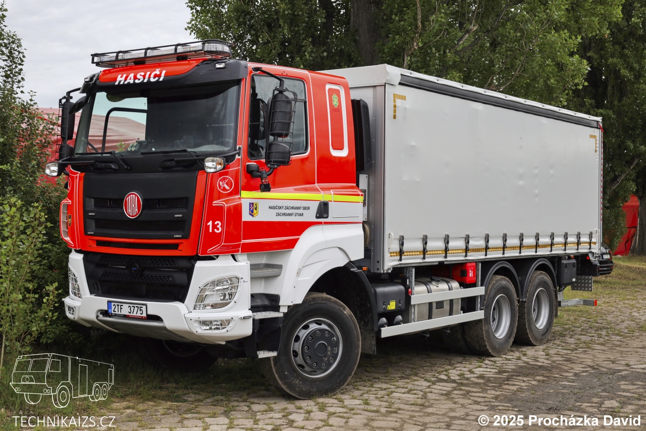 Doplňující info:Nákladní vozidlo o rozměrech 9,2 × 2,5 × 3,7 metru a provozní hmotnosti 12 870 kg je vybaveno výkonným motorem o výkonu 355 kW, který je spojen s automatickou převodovkou Allison. Vozidlo dosahuje maximální rychlosti až 100 km/h. Ložná plocha má objem 34,5 m³ a její vnitřní rozměry činí 6,4 metru na délku, 2,45 metru na šířku a 2,2 metru na výšku, což umožňuje přepravu až 16 europalet. Pro snadnou manipulaci s nákladem je vozidlo vybaveno zvedacím čelem značky Dhollandia s nosností 2 000 kg. Náklad je možné bezpečně upevnit pomocí vázacích prostředků, kotvících ok s nosností až 2 tuny a systému uchycení materiálu Multilock, který zajišťuje flexibilní a bezpečné zajištění přepravovaného zboží. Tatra je určen zejména k převozu paletového a volně loženého materiálu při provádění záchranných a likvidačních prací. Vozidlo disponuje spací kabinou.